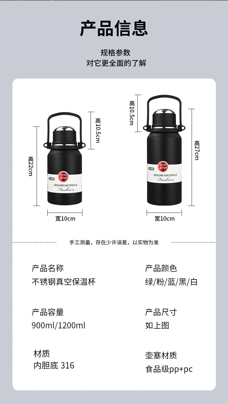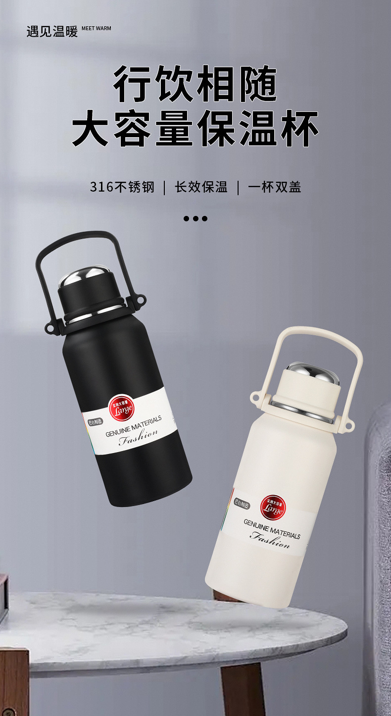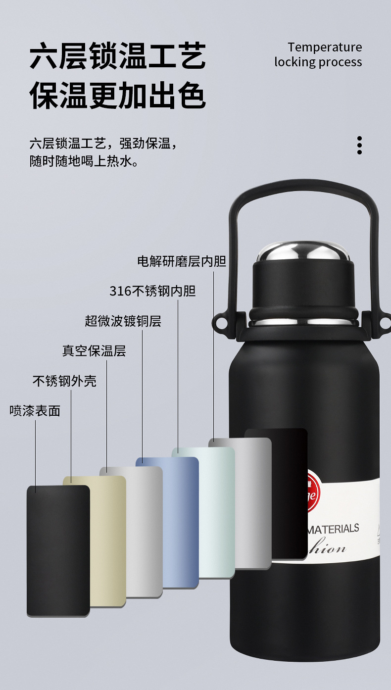대용량 316 스테인레스 스틸 진공 머그 간단한 휴대용 등산 여행 냄비 야외 휴대용 스포츠 주전자