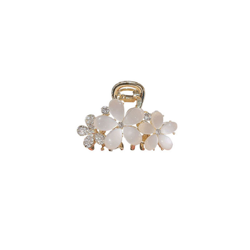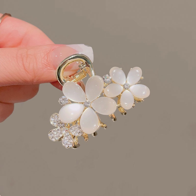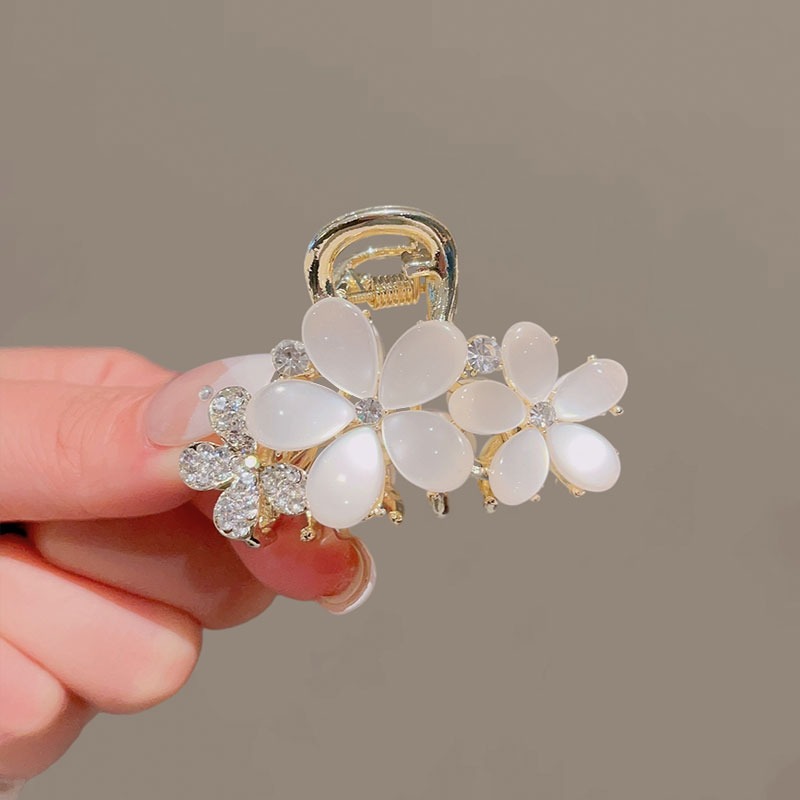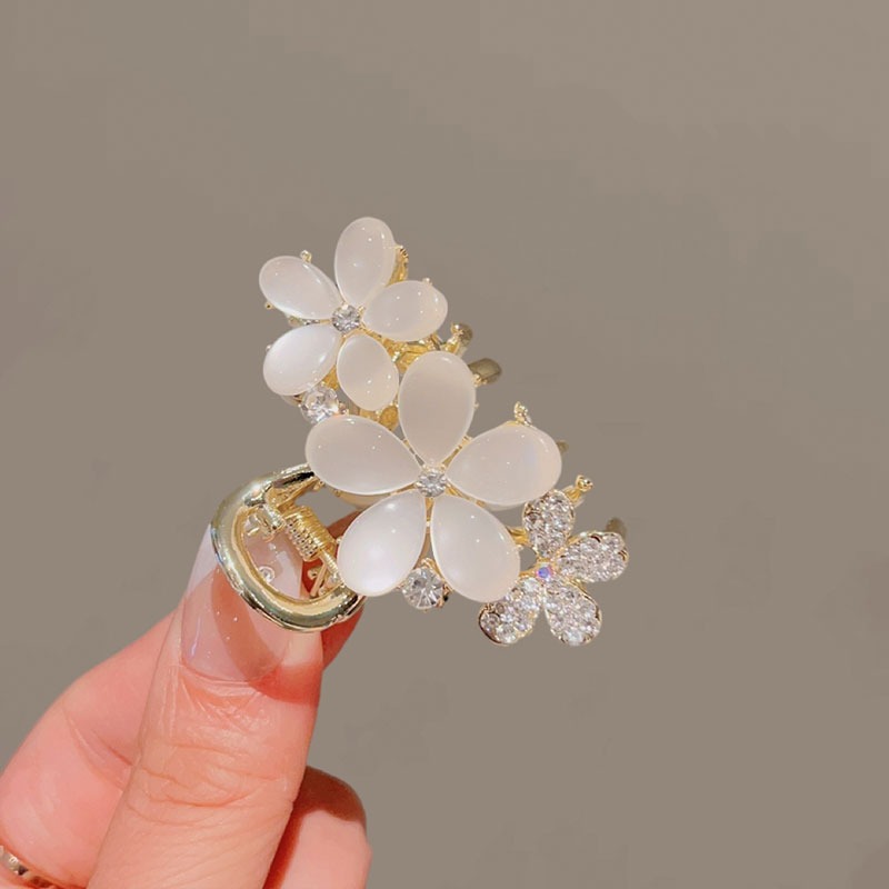 오팔 플라워 그랩 클립 중간 2023 새로운 스타일 우아한 클립 머리 반 머리핀 여성 상어 클립 모자