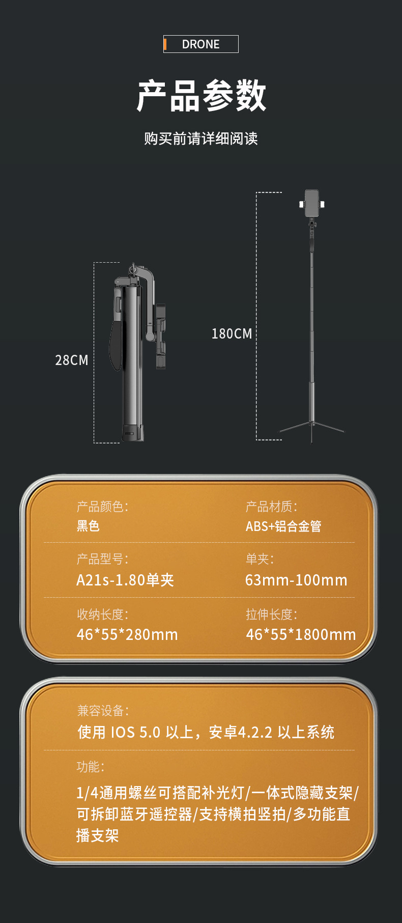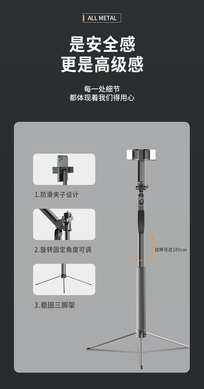 도매 Douyin 동일한 스타일의 다기능 휴대폰 셀카봉 360도 회전 범용 축 야외 라이브 방송 삼각대