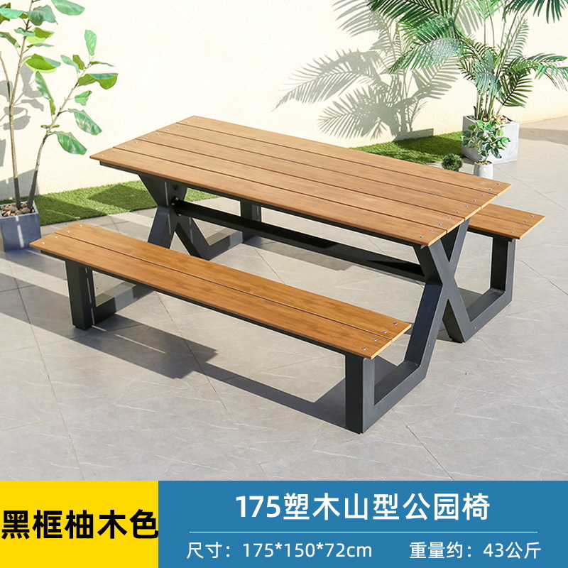 • 175cm 플라스틱 나무 산 공원 의자 "검은 프레임 티크 컬러]