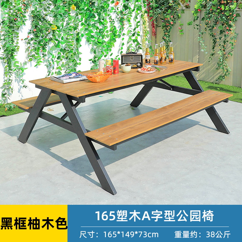 • 165cm 플라스틱 나무 A 자형 공원 의자 "검은 프레임 티크 컬러]
