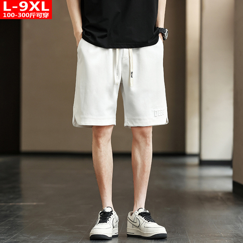 여름 트렌디 한 남성용 단색 니트 면 5 점 미디엄 팬츠 통통한 대형 플러스 뚱뚱한 느슨한 바지 남성 스포츠 캐주얼 반바지