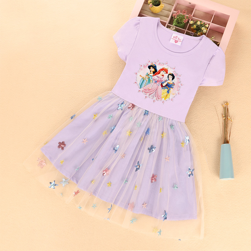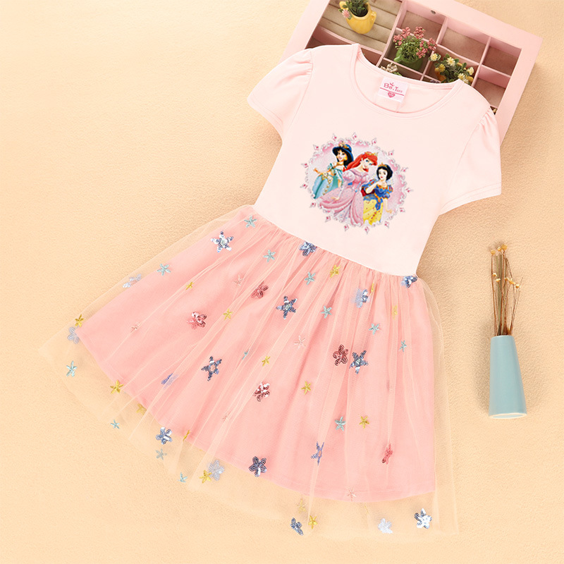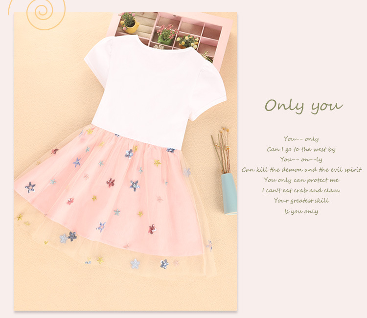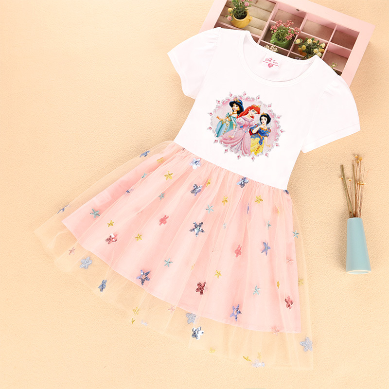 대외 무역 소녀 여름 원피스 2023 새로운 반팔 별이 빛나는 하늘 치마 소녀 공주 원사 스커트 아마존 공급스토어 가기