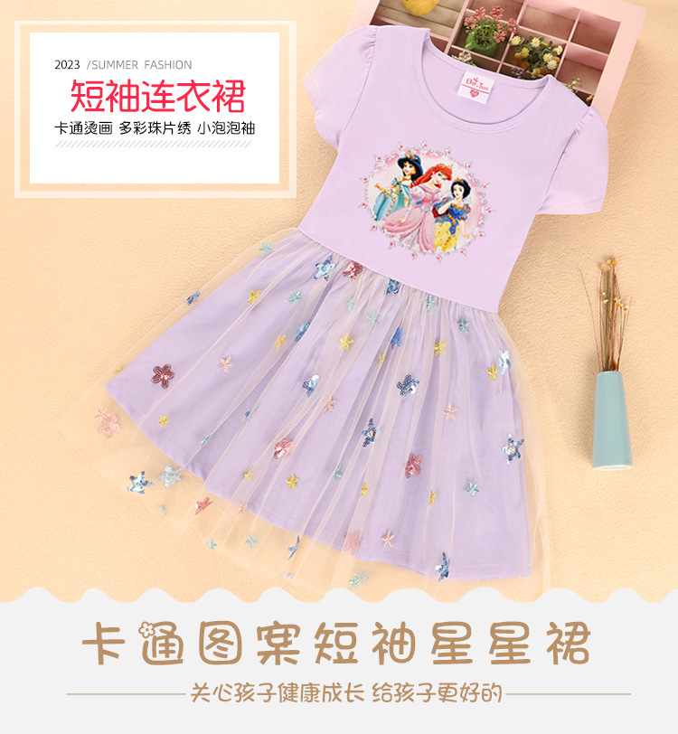 대외 무역 소녀 여름 원피스 2023 새로운 반팔 별이 빛나는 하늘 치마 소녀 공주 원사 스커트 아마존 공급