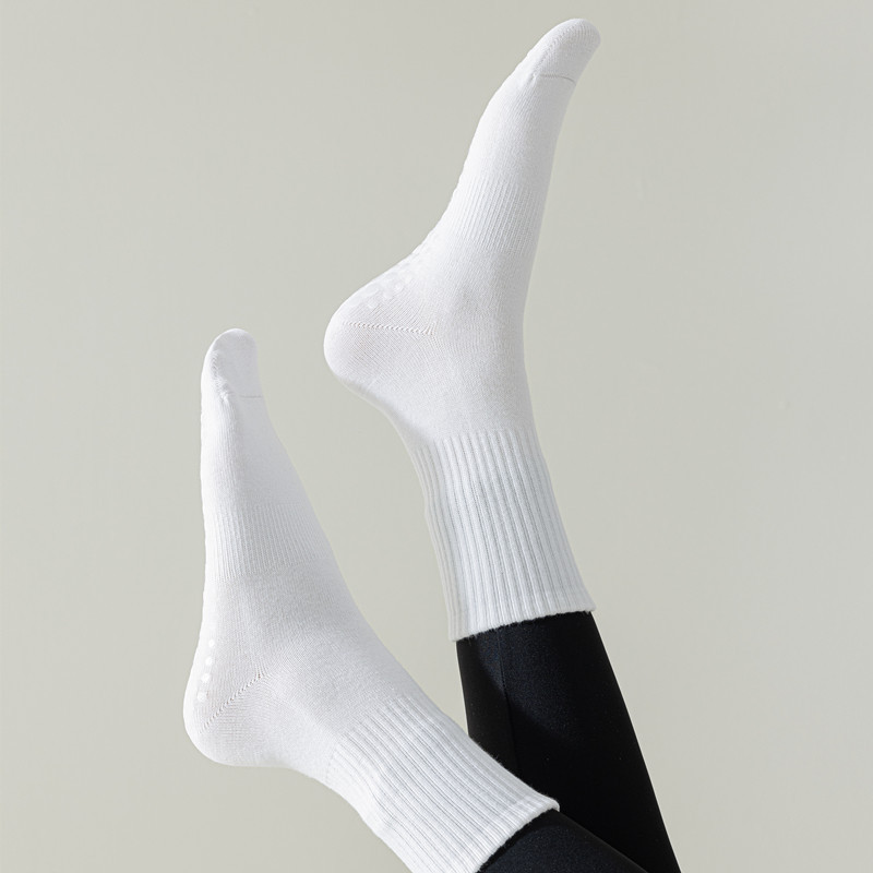 25 봄과 여름 여성용 미끄럼 방지 피트니스 요가 양말 간단한 솔리드 컬러 여성용 중반 송아지면 양말 야외 스포츠 양말 러닝 양말