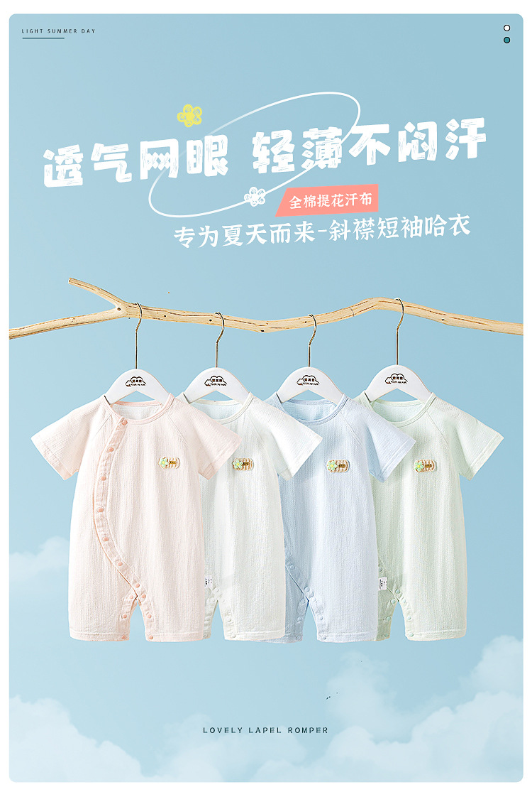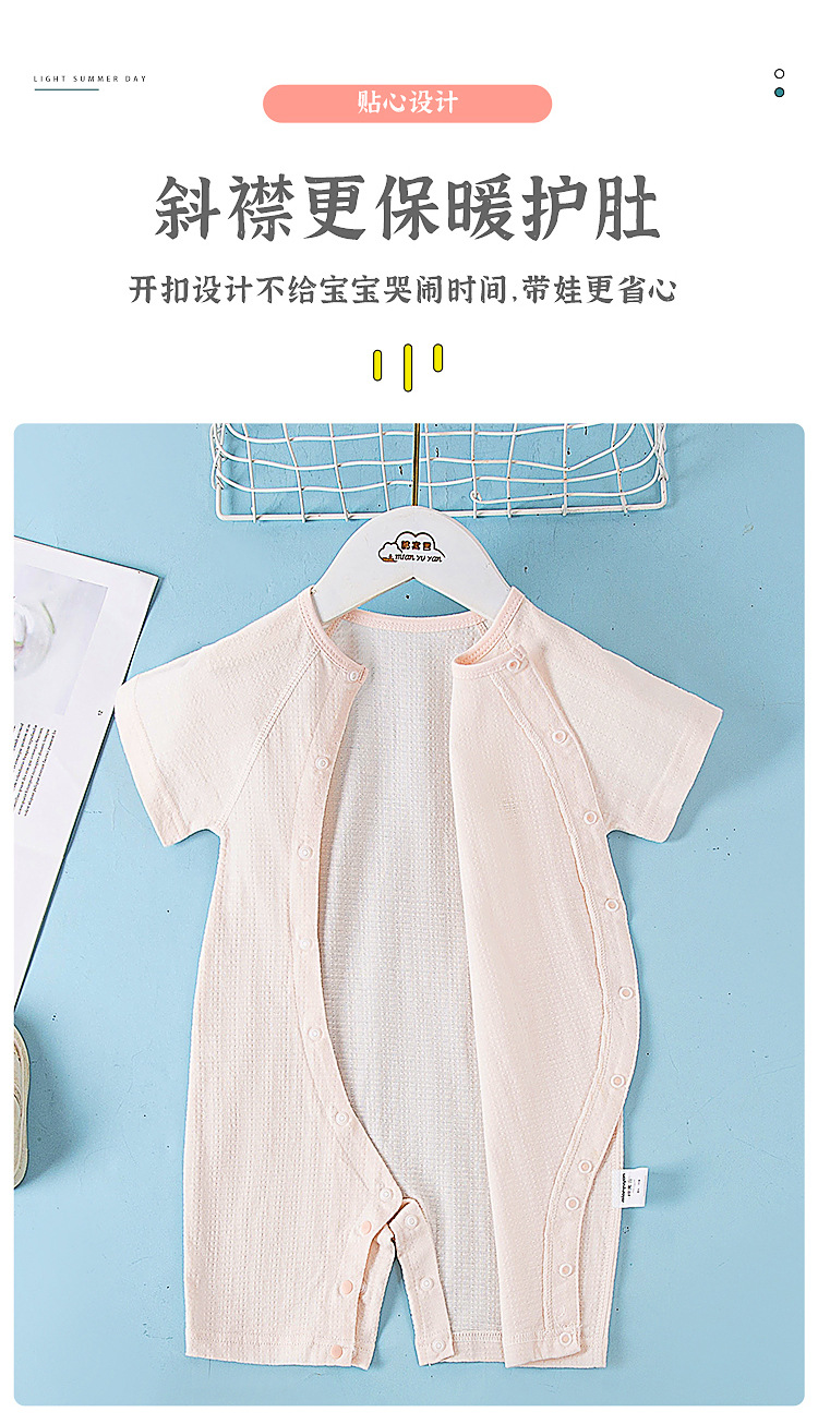 신생아 잠옷 반팔 순면 얇은 경사 가슴 아기 점프 수트 여름 가정복 아기 하퍼 뼈없는 등산복스토어 가기