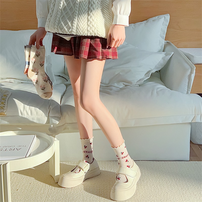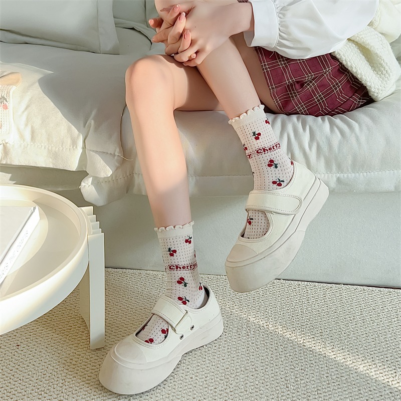 짧은 튜브 여름 양말 여성용 신선한 중공 얇은 양말 여성용 중간 튜브 양말 학생 양말 짧은 양말 일본식 귀여운스토어 가기