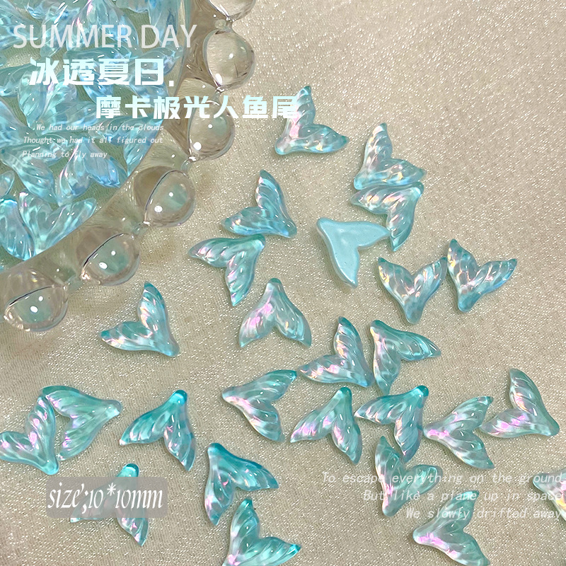 여름을 통해 그물 빨간 얼음 오로라 모카 사람들 물고기 꼬리 손톱 보석 다이아몬드 도매 손톱 크리스탈 플랫 다이아몬드 혼합스토어 가기