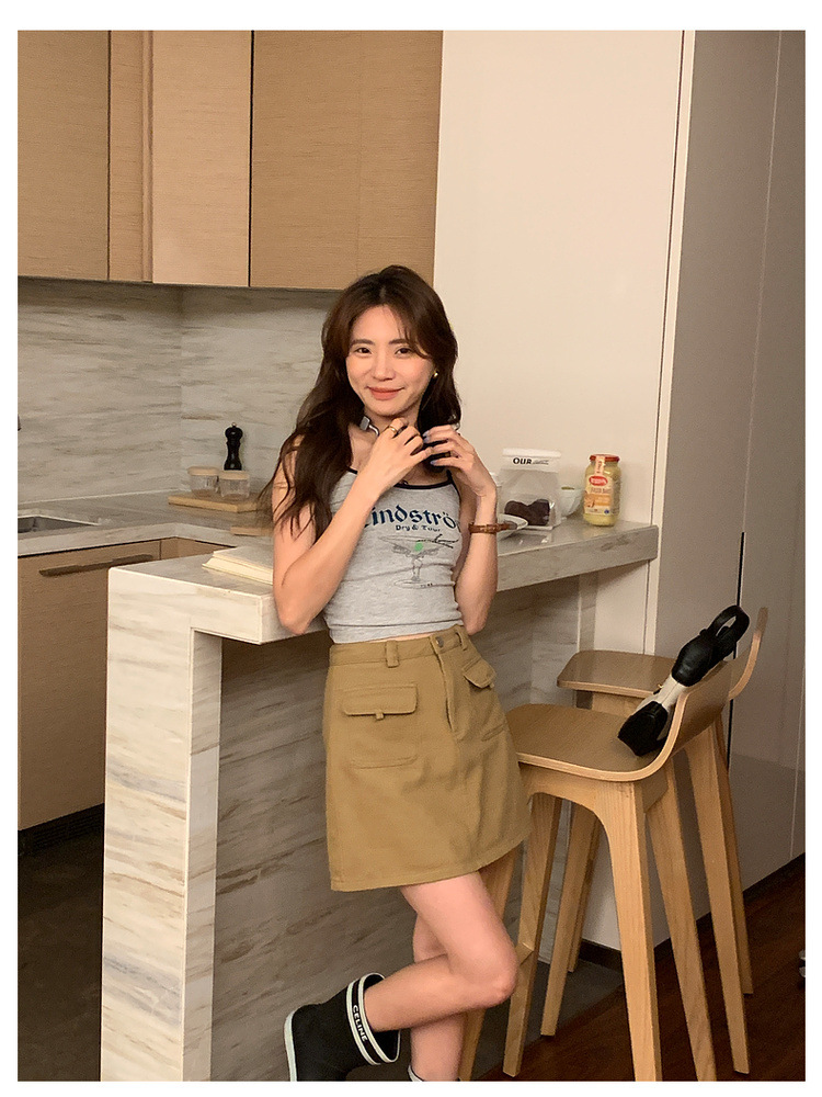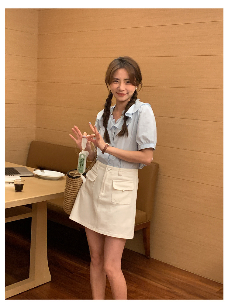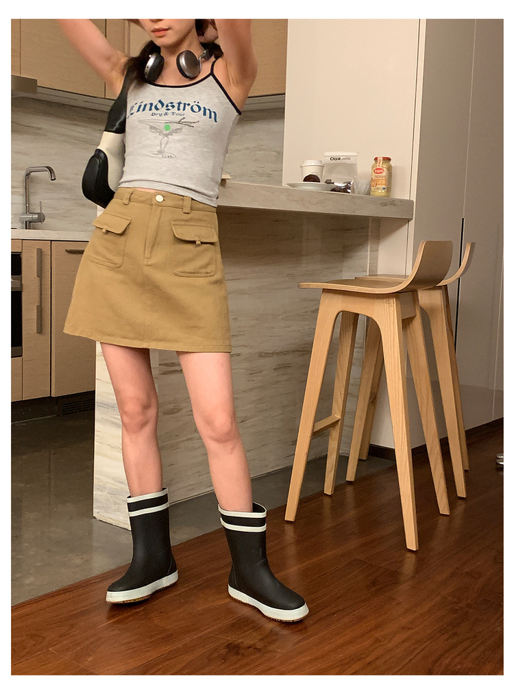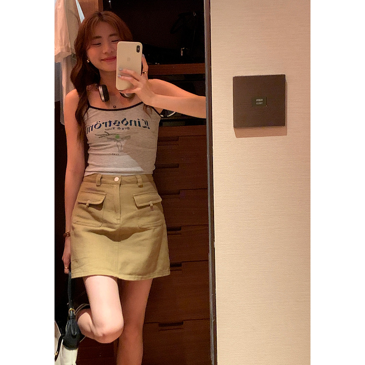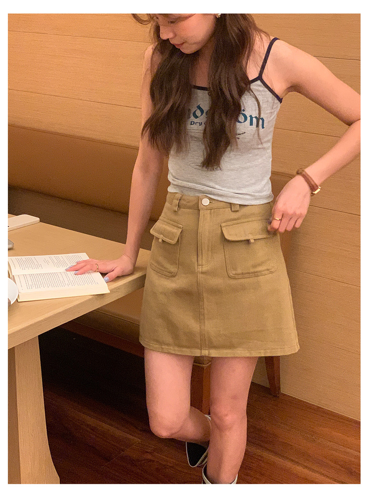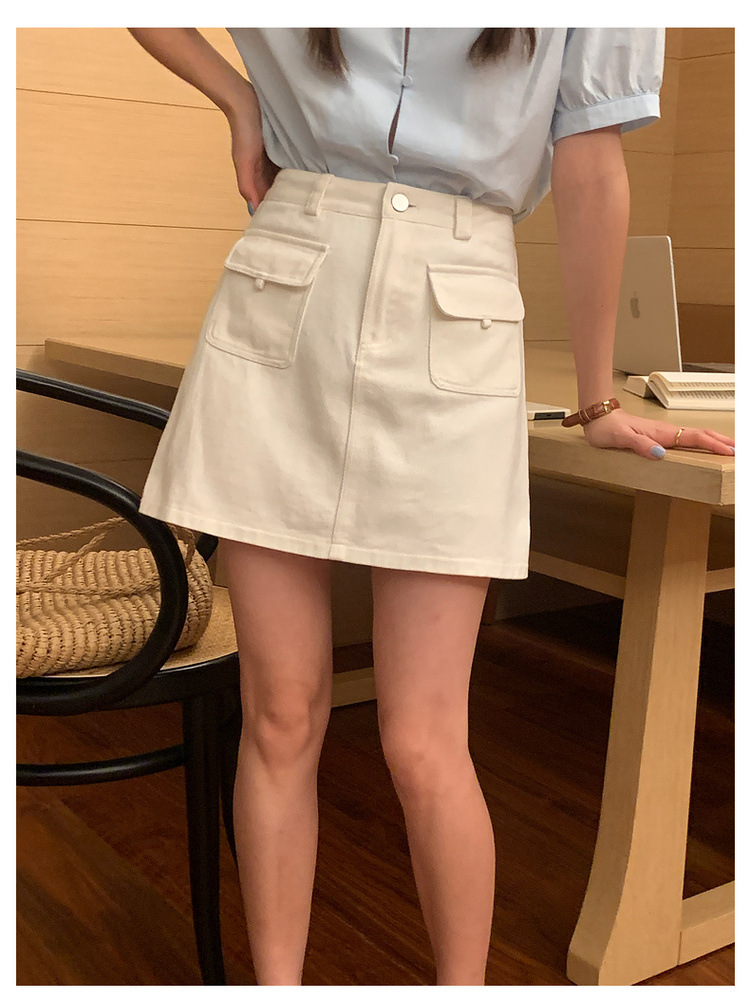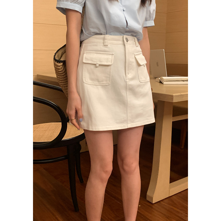 Huang Zheng 디자인 포켓 데님 스커트 여자의 2023 여름 한국 스타일 단색 하이 웨이스트 엉덩이 A 라인 스커트 132QD6843스토어 가기