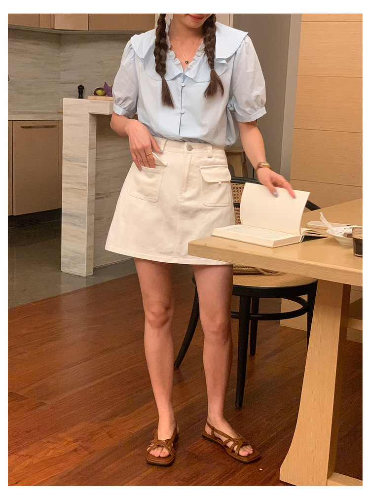 Huang Zheng 디자인 포켓 데님 스커트 여자의 2023 여름 한국 스타일 단색 하이 웨이스트 엉덩이 A 라인 스커트 132QD6843