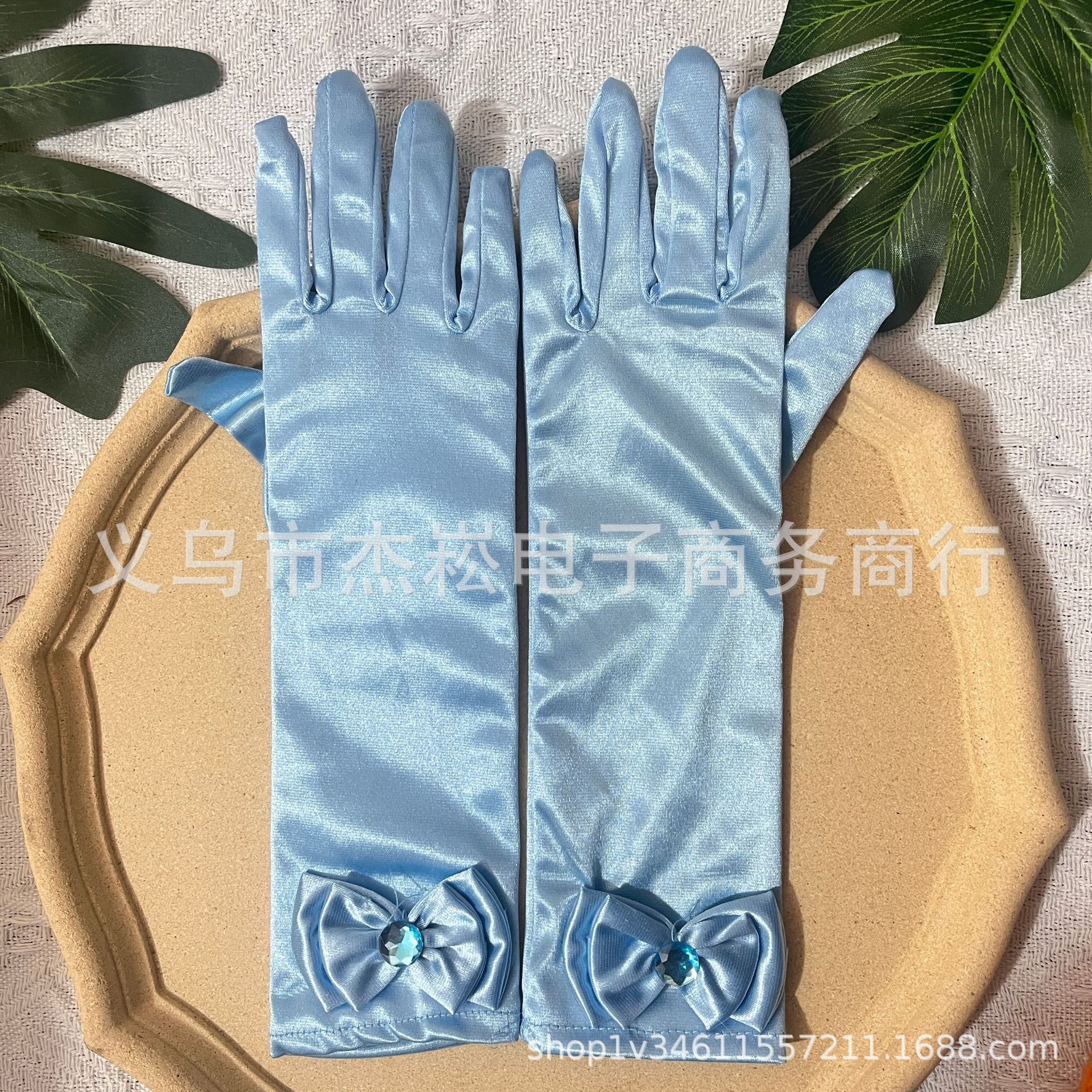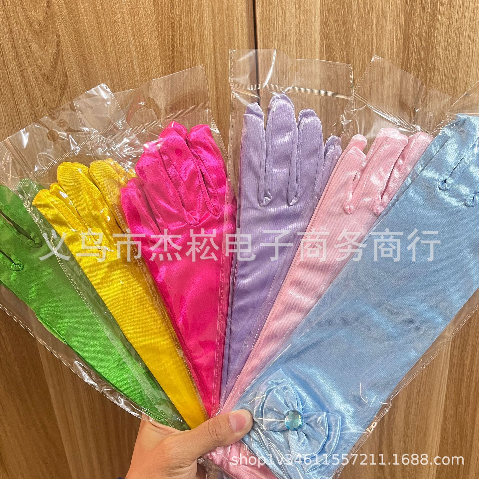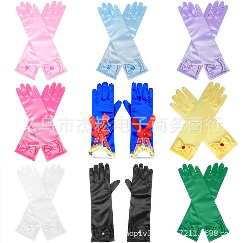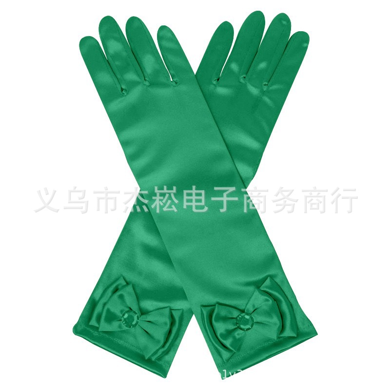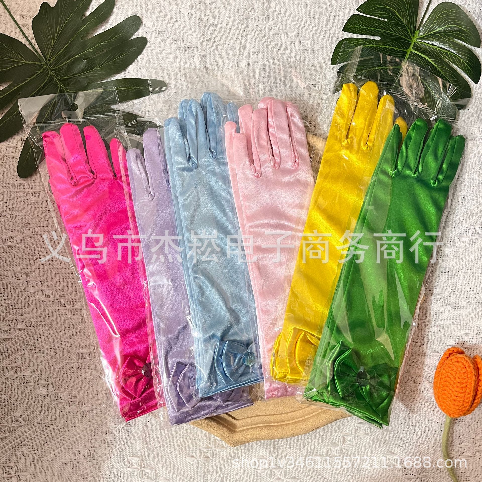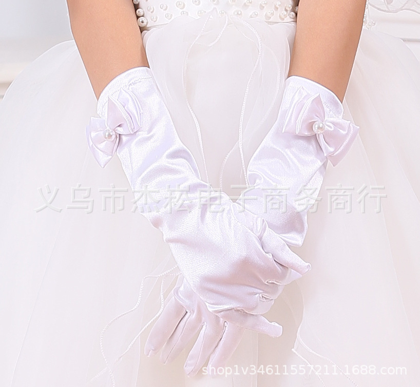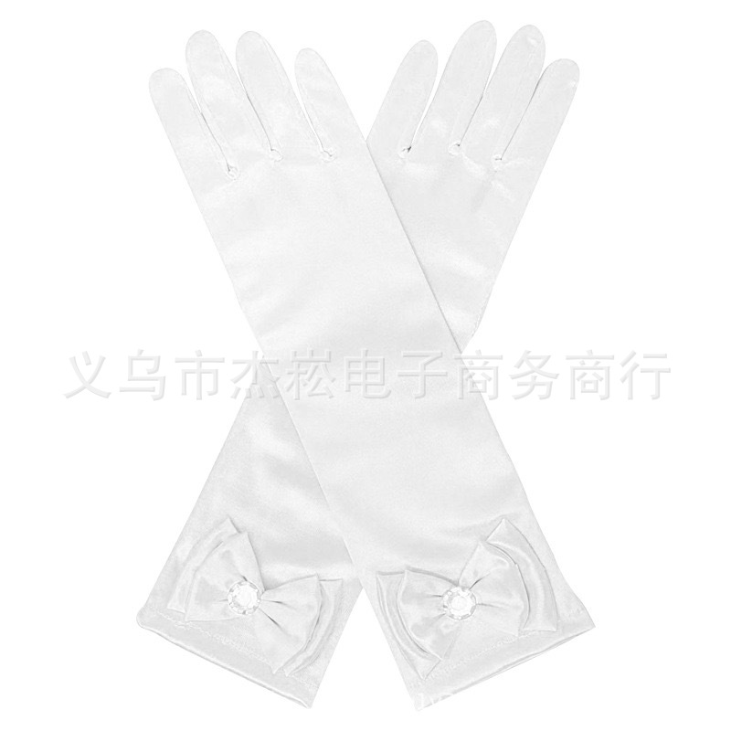 냉동 어린이 댄스 볼 긴 장갑 의상 재고 빠른 머리 꽃 소녀 활 새틴 장갑