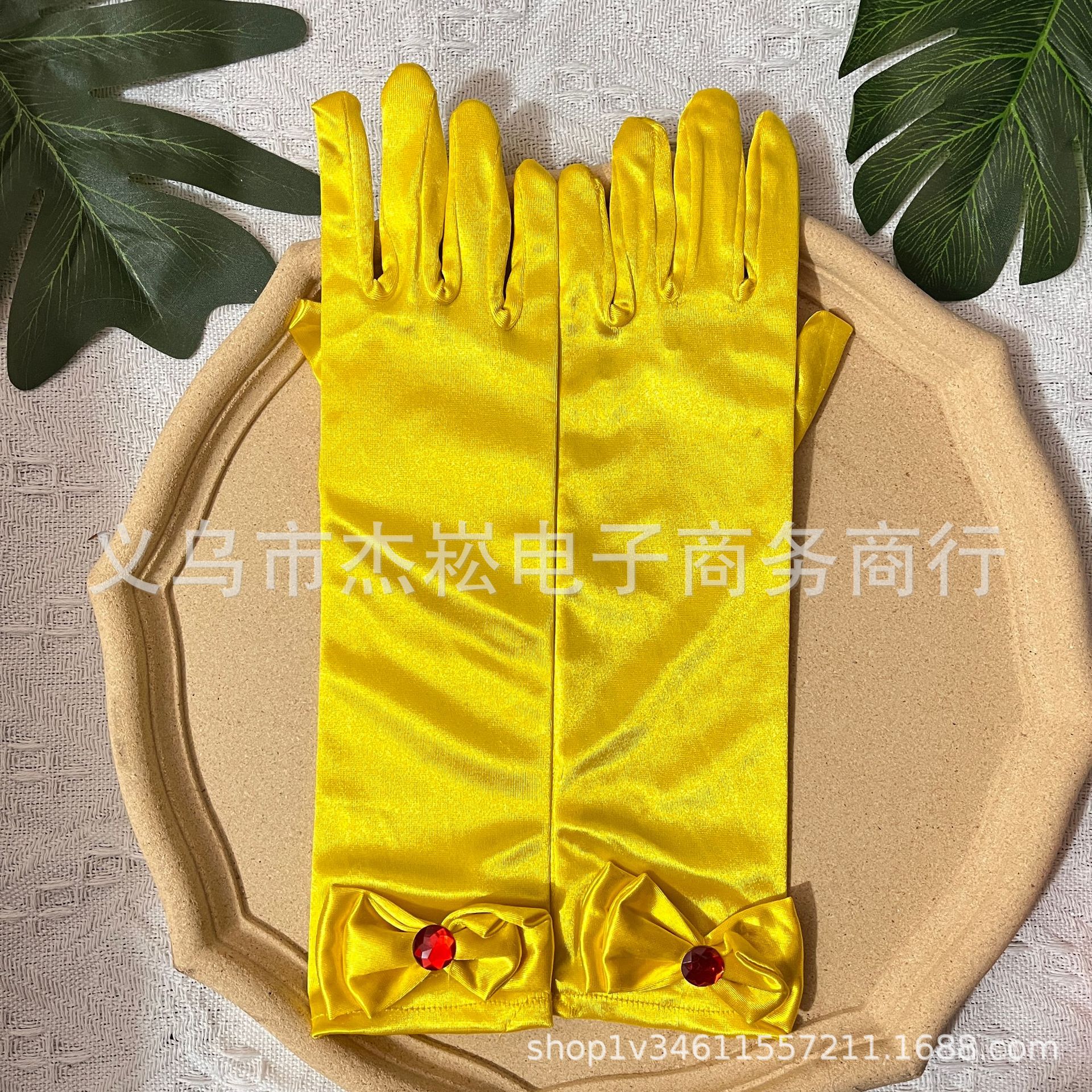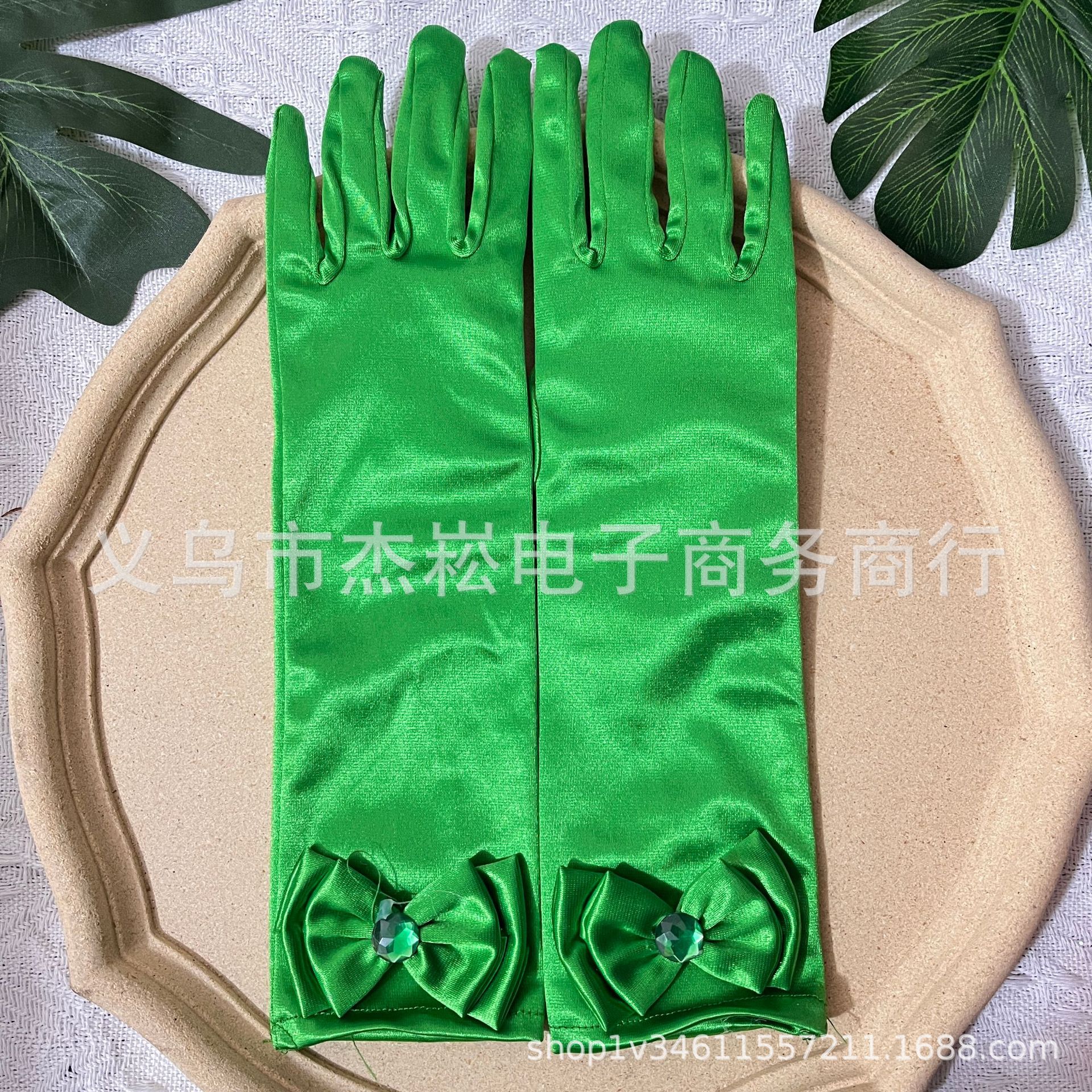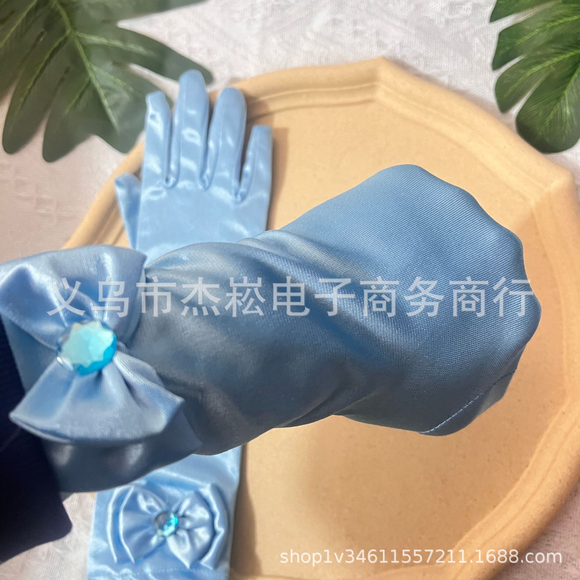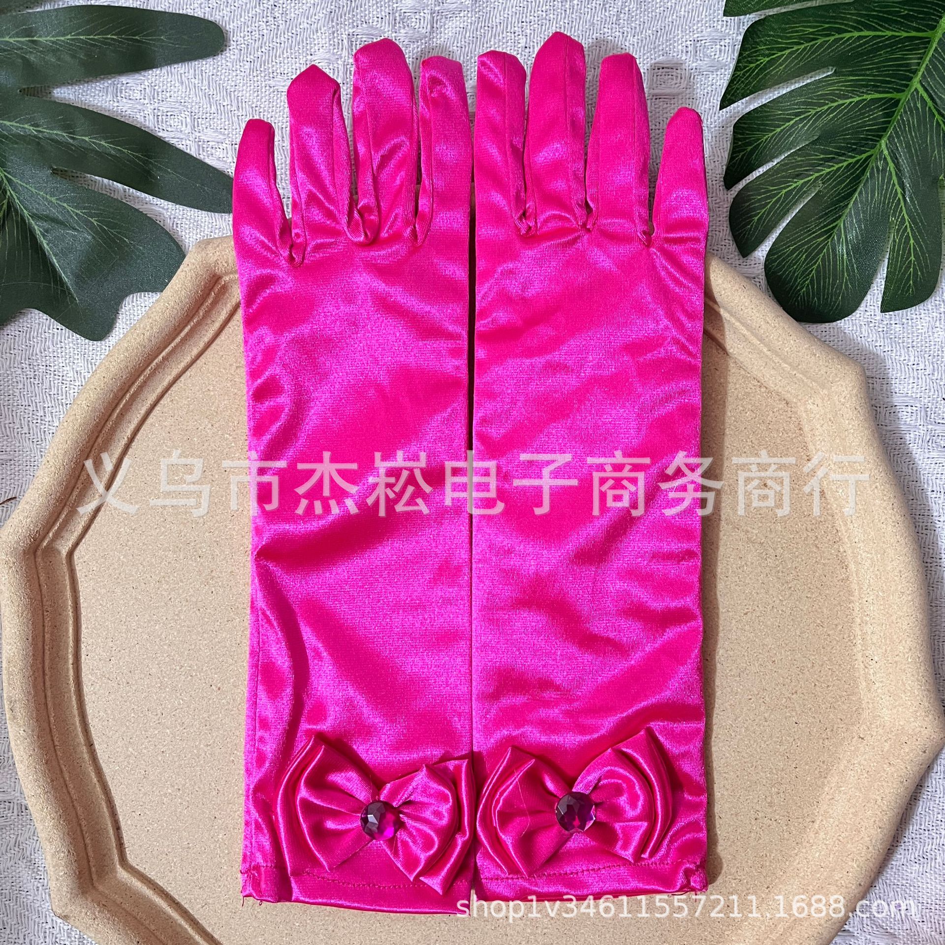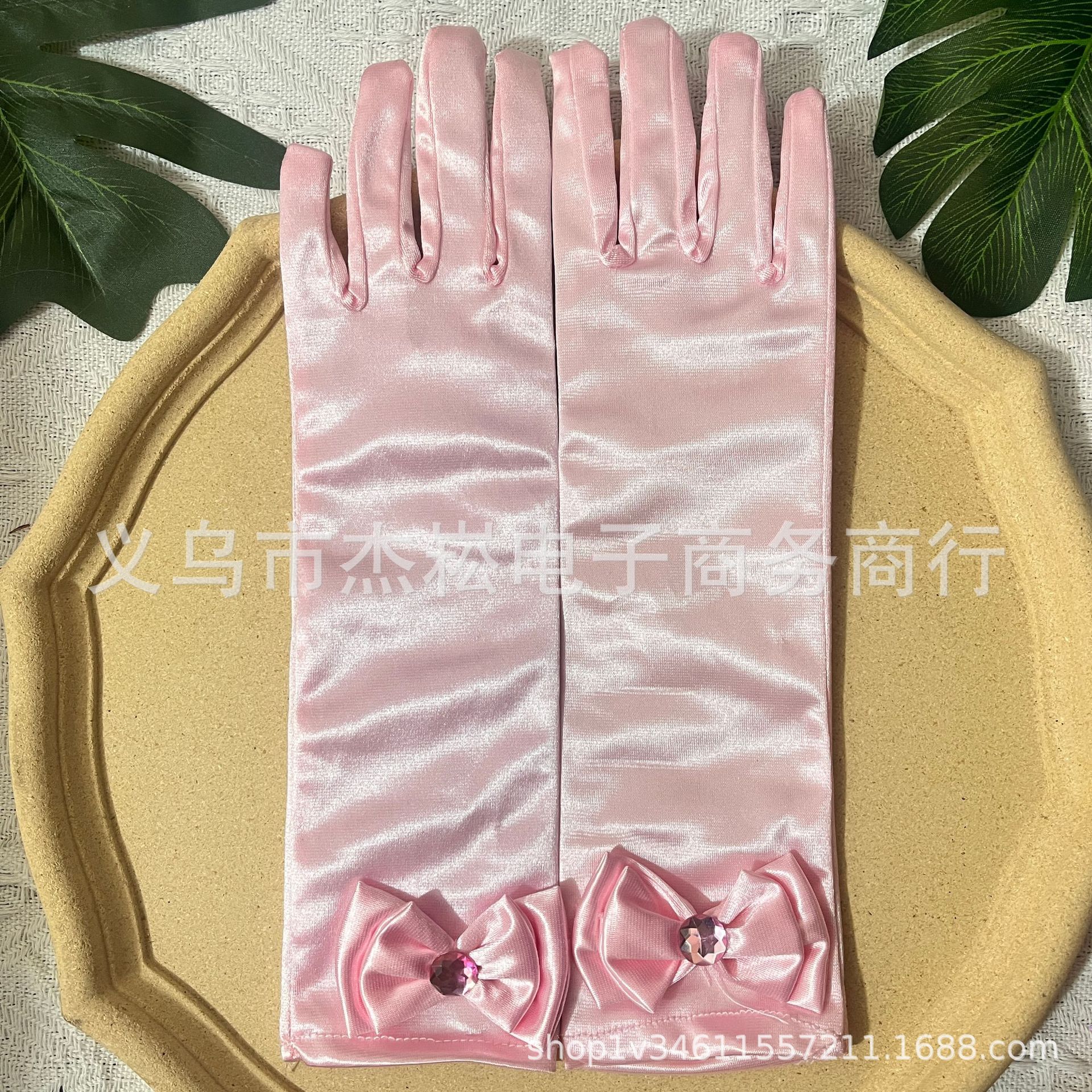 냉동 어린이 댄스 볼 긴 장갑 의상 재고 빠른 머리 꽃 소녀 활 새틴 장갑