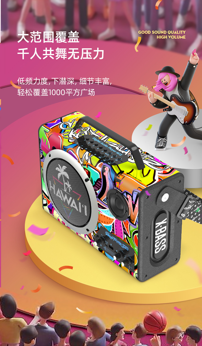 힙합 낙서 광장 댄스 오디오 야외 휴대용 고성능 서브 우퍼 K 노래 트렌디 한 블루투스 스피커