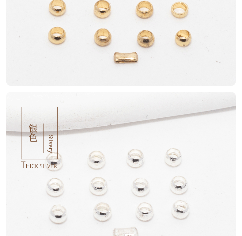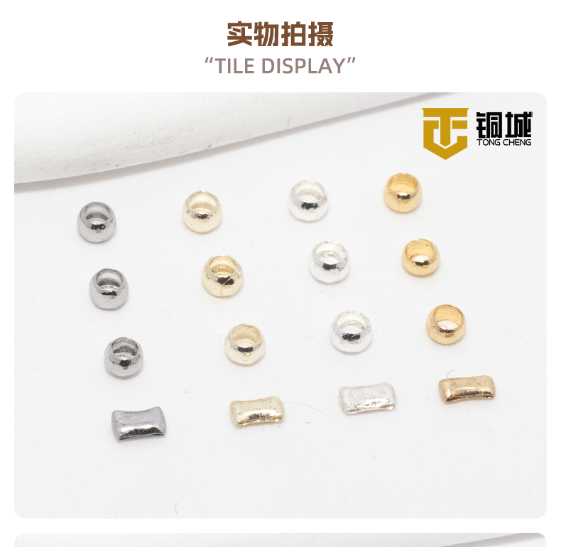 本款产品是专门用来夹扁、固定的,一般叫做定位珠(固定球)。本页图片中有夹扁的都是展示夹扁后的大概效果,实际您收到的是圆珠形状,所以这款产品也可以做隔珠用。