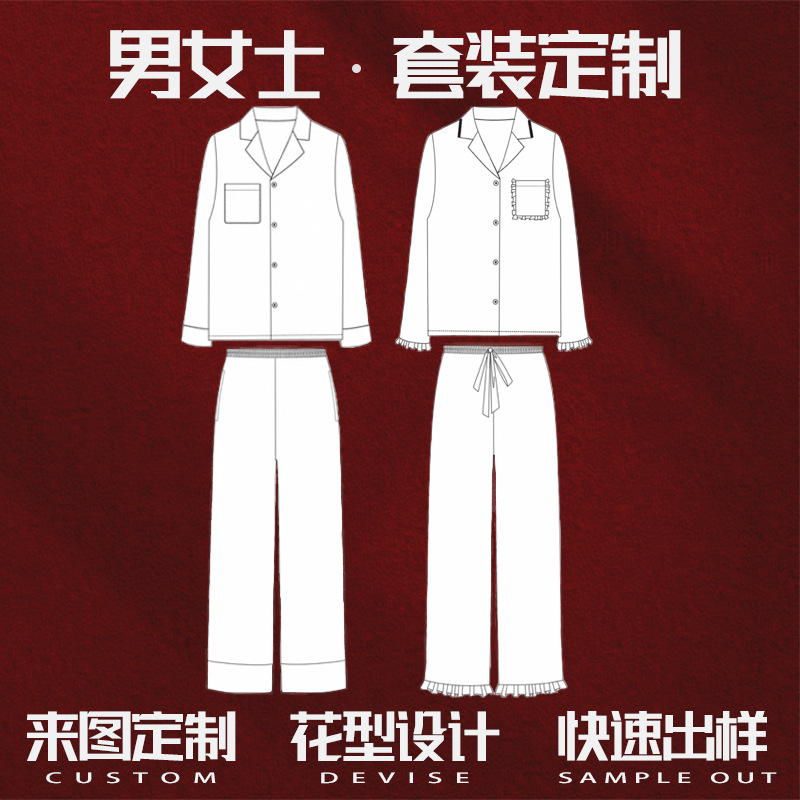 Meilu-Custom I 남성용 및 여성용 긴팔 잠옷 세트, 실크 자수 프린트, 맞춤형 버전스토어 가기