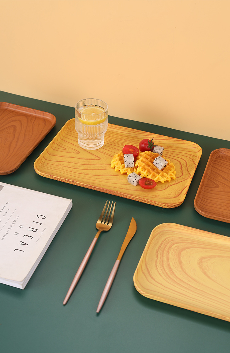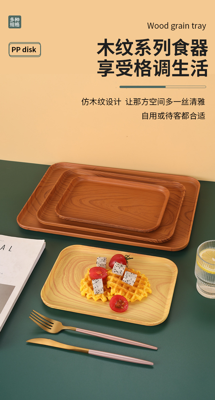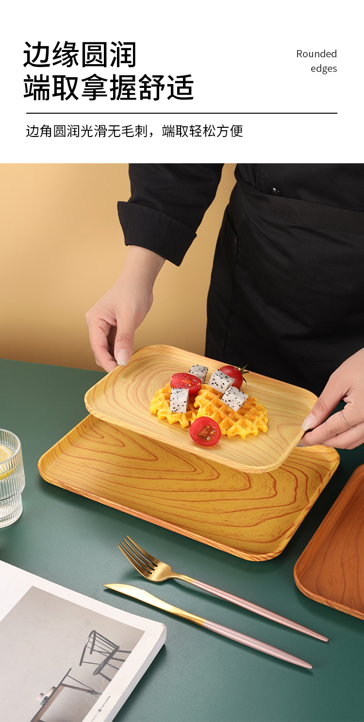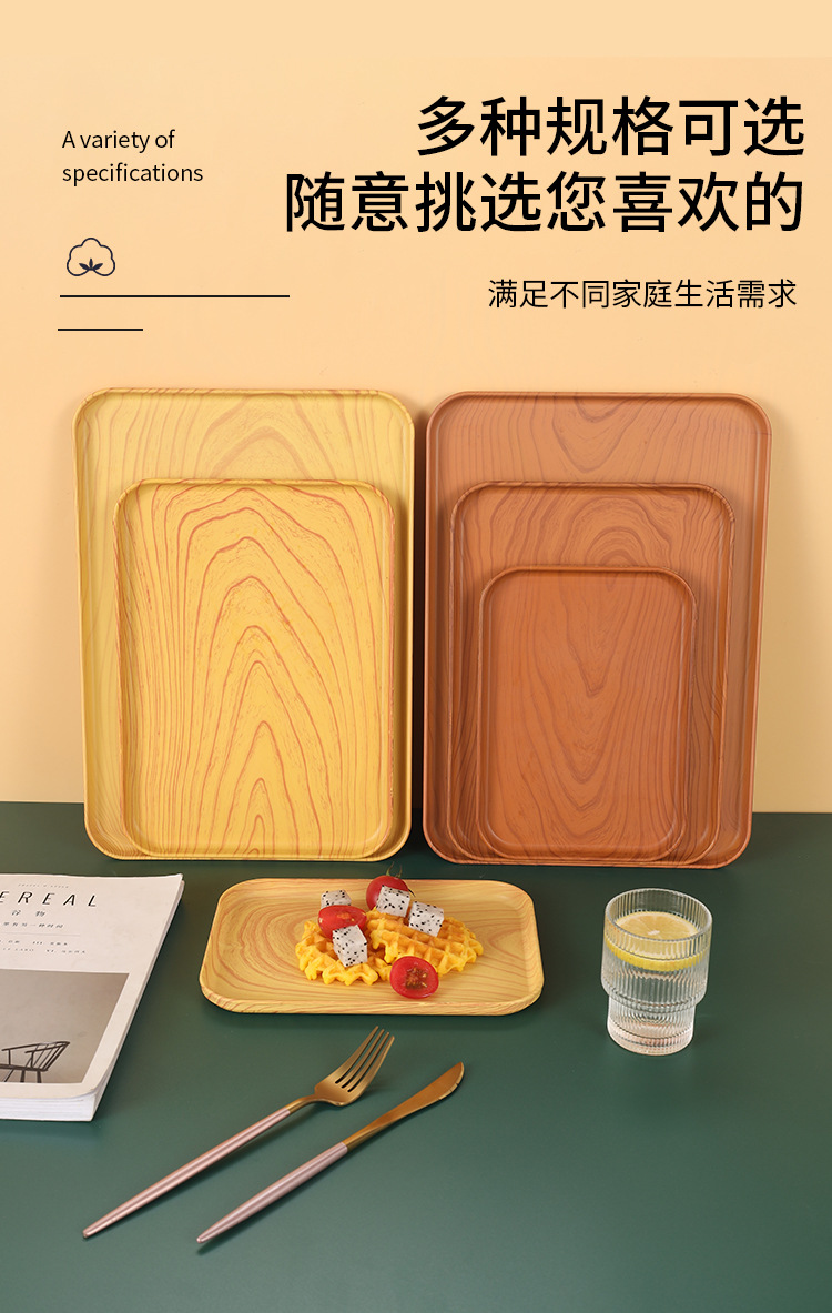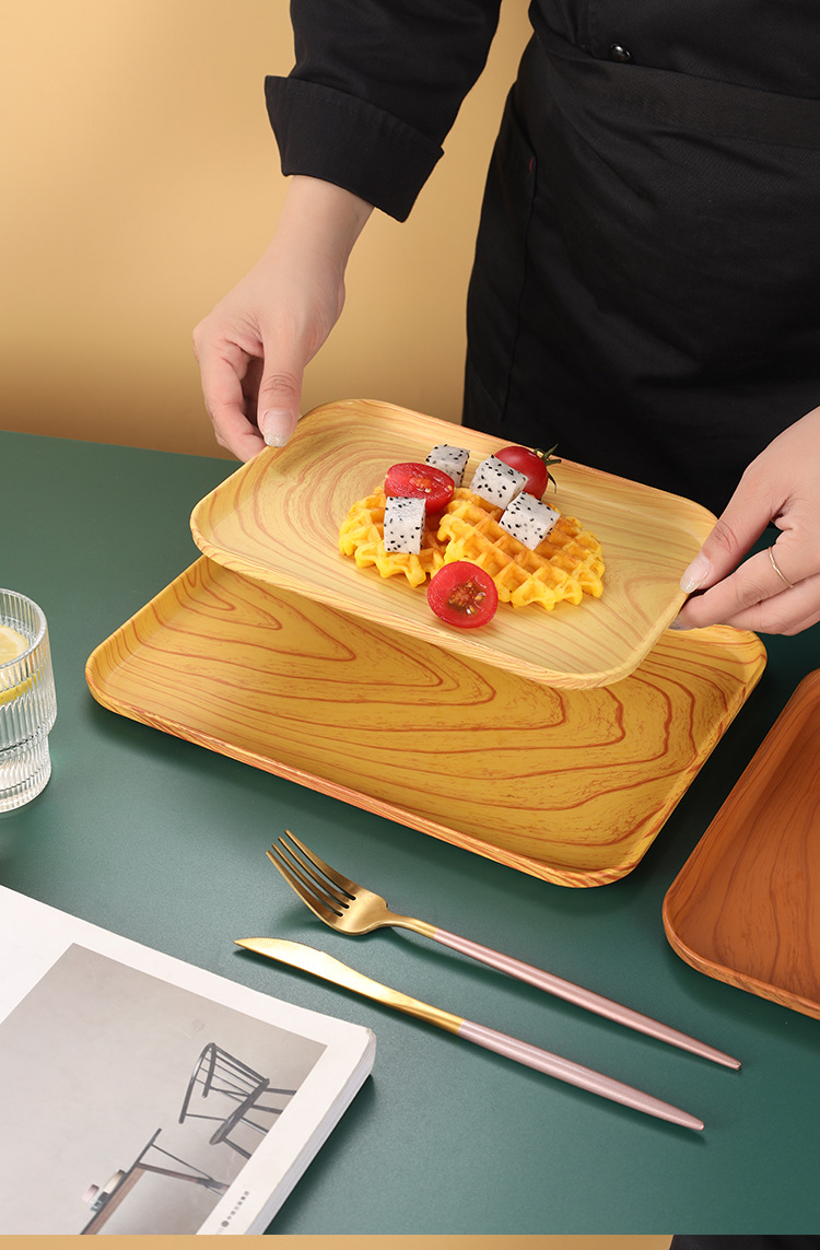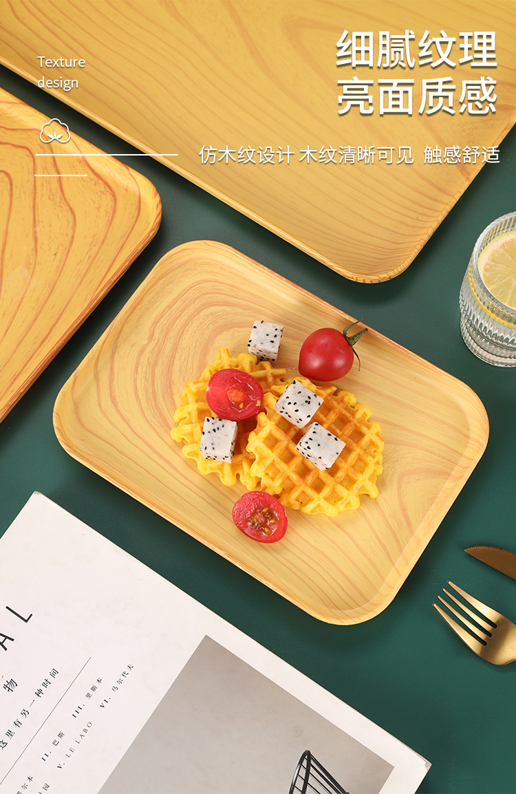 소스 공장 밀 플라스틱 직사각형 접시 레스토랑 가정용 디너 플레이트 북유럽 조명 럭셔리 모조 오크 패턴 트레이스토어 가기