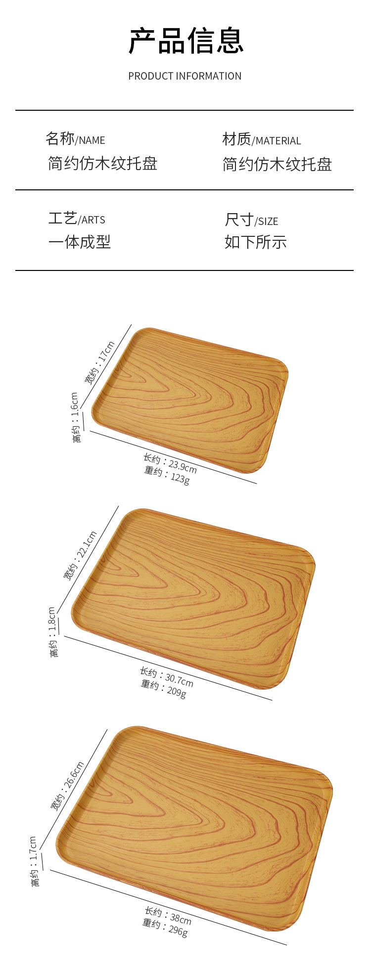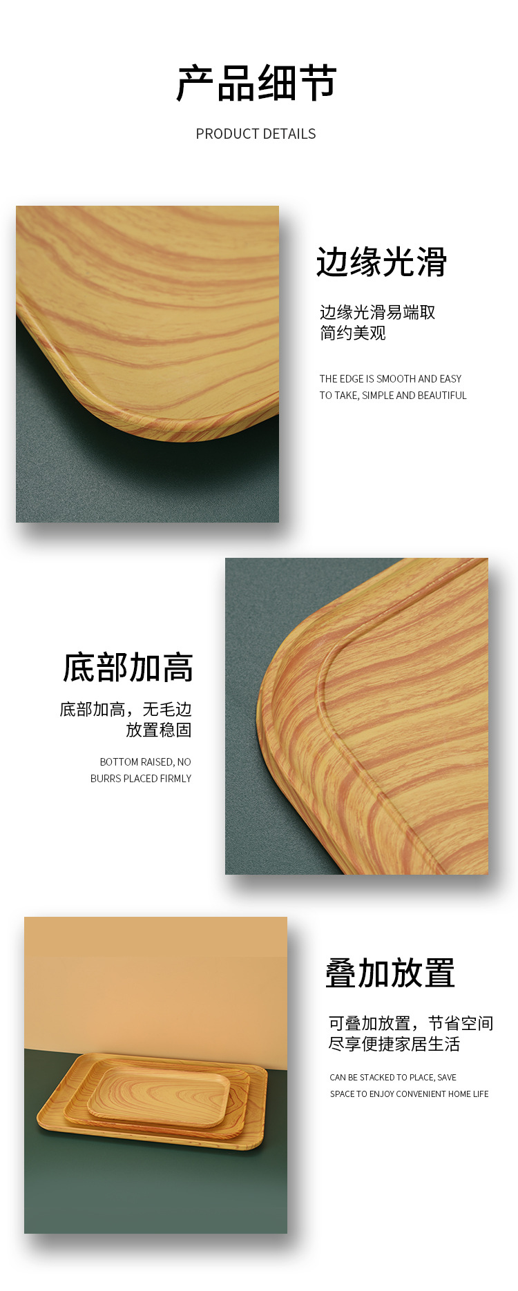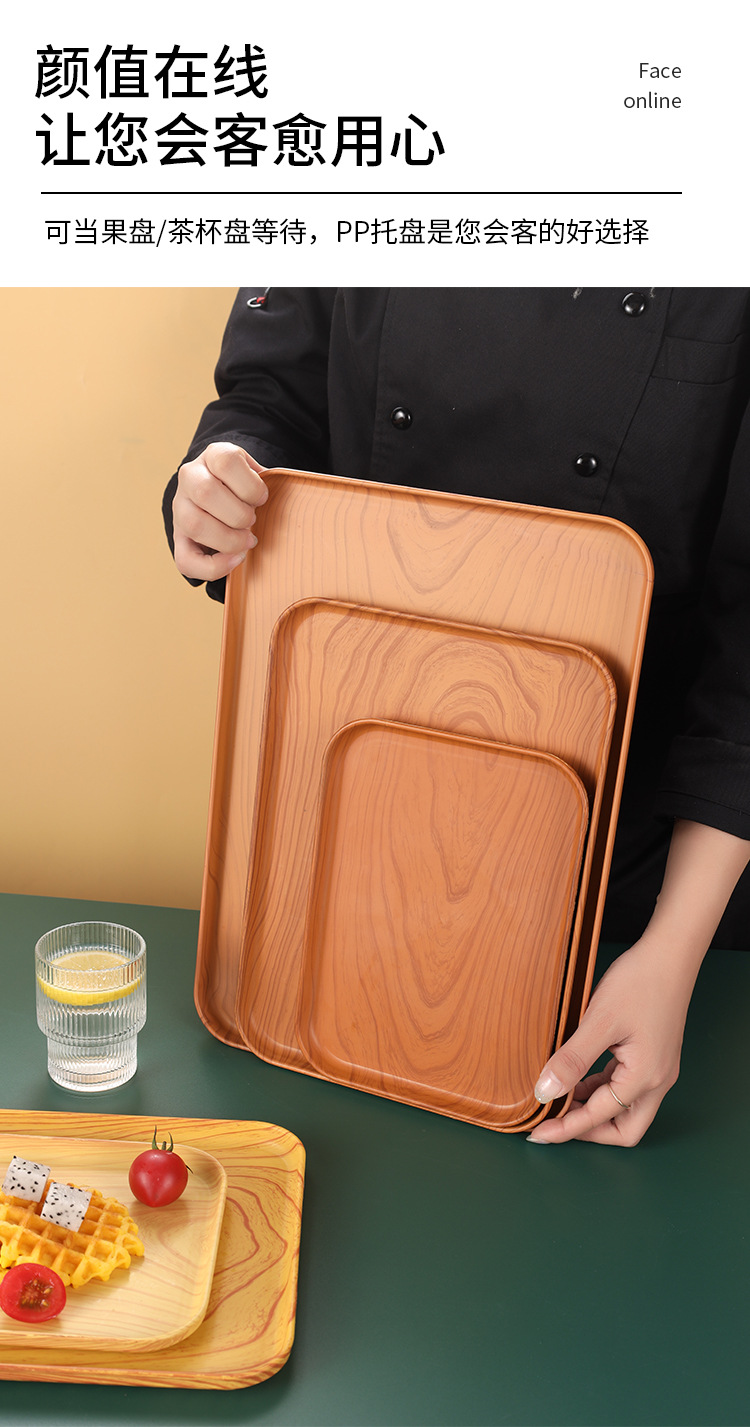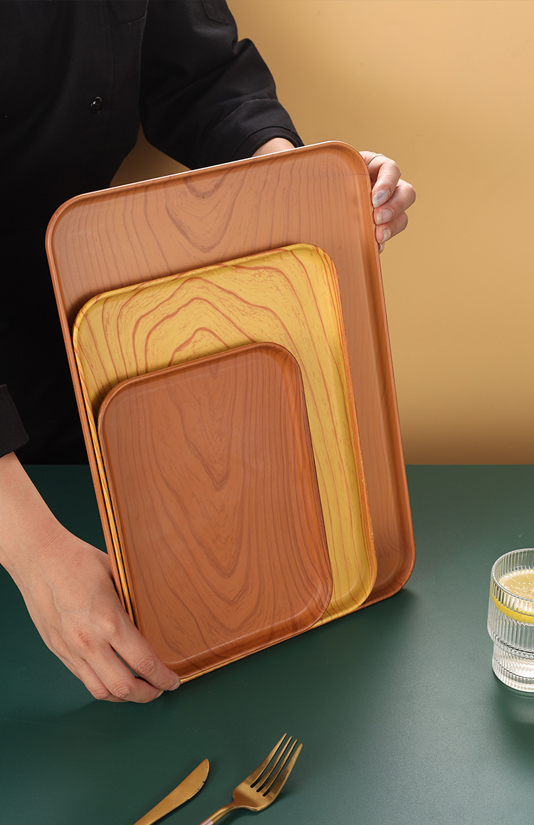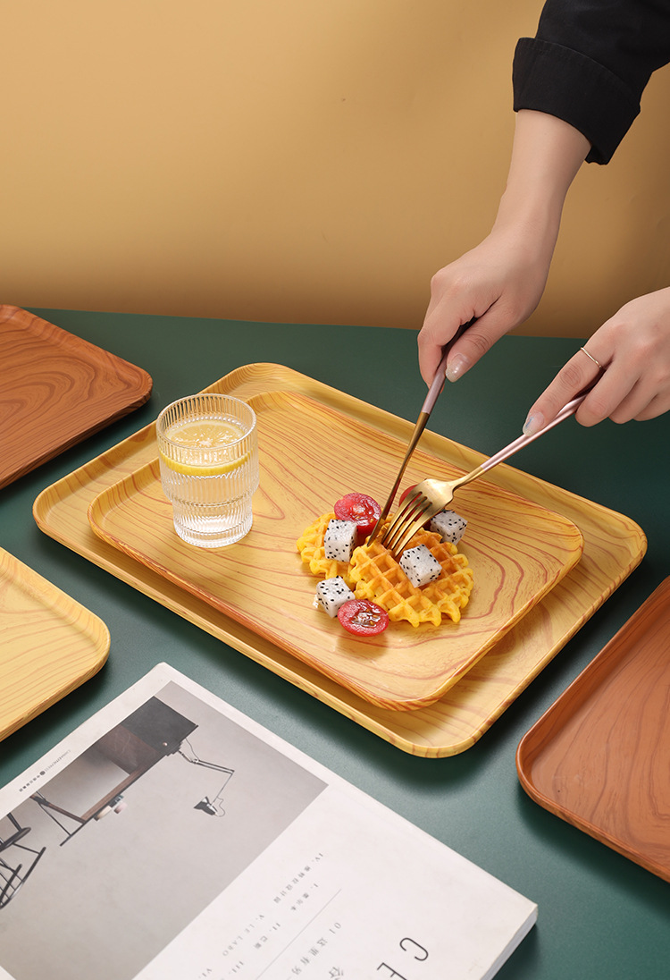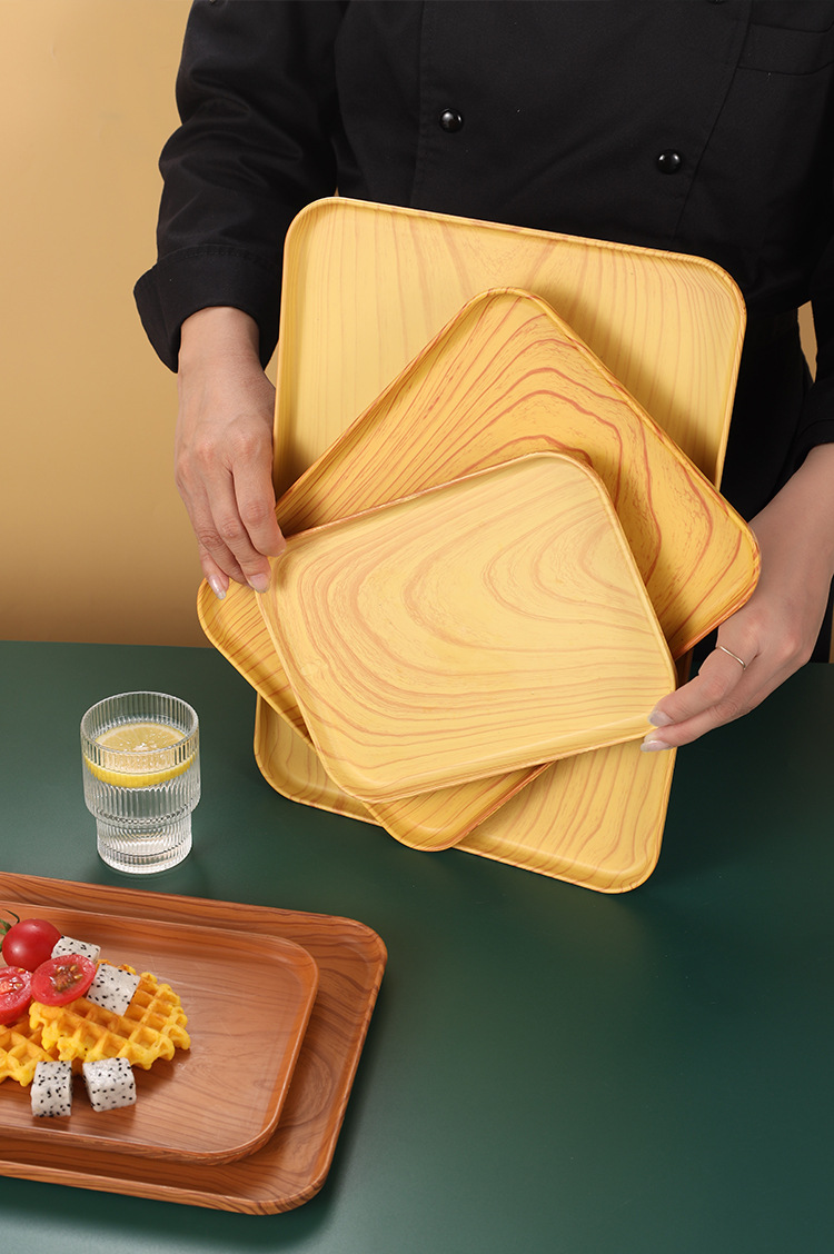 소스 공장 밀 플라스틱 직사각형 접시 레스토랑 가정용 디너 플레이트 북유럽 조명 럭셔리 모조 오크 패턴 트레이스토어 가기