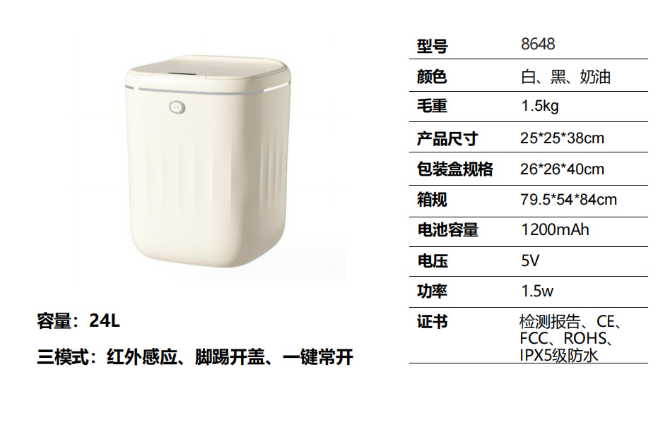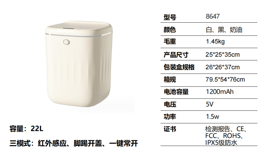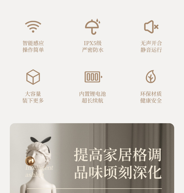 자동 지능형 조명 럭셔리 인덕션 쓰레기통 뚜껑 방수 가정용 거실 주방 전기 휴지통 2023 대형스토어 가기