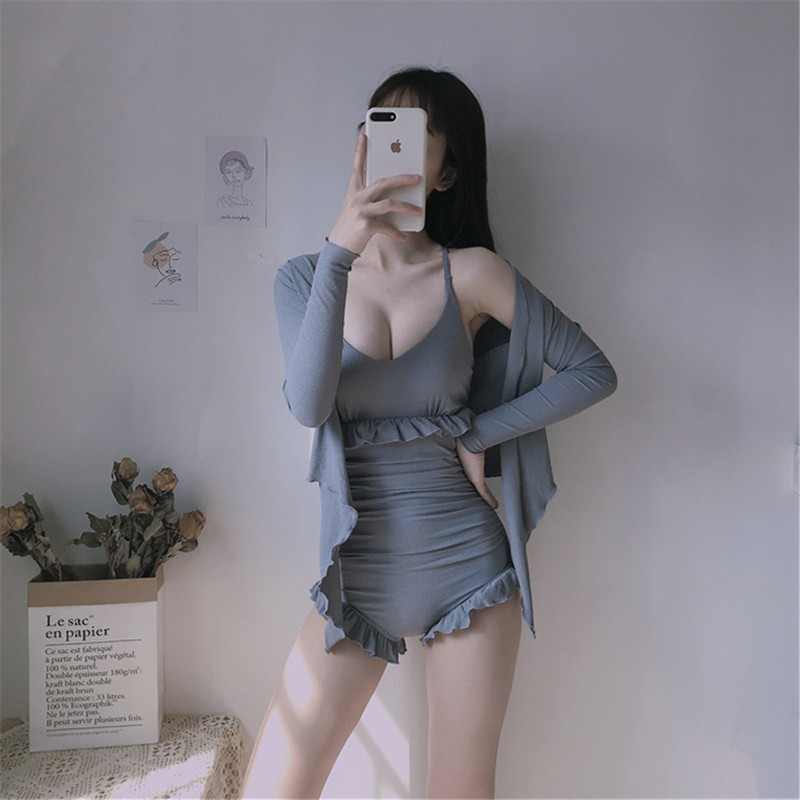 크로스 국경 도매 인터넷 유명인 스타일 작은 향기로운 스타일 회색 섹시한 원피스 배꼽 커버 슬림 보수적 인 온천 휴가 수영복