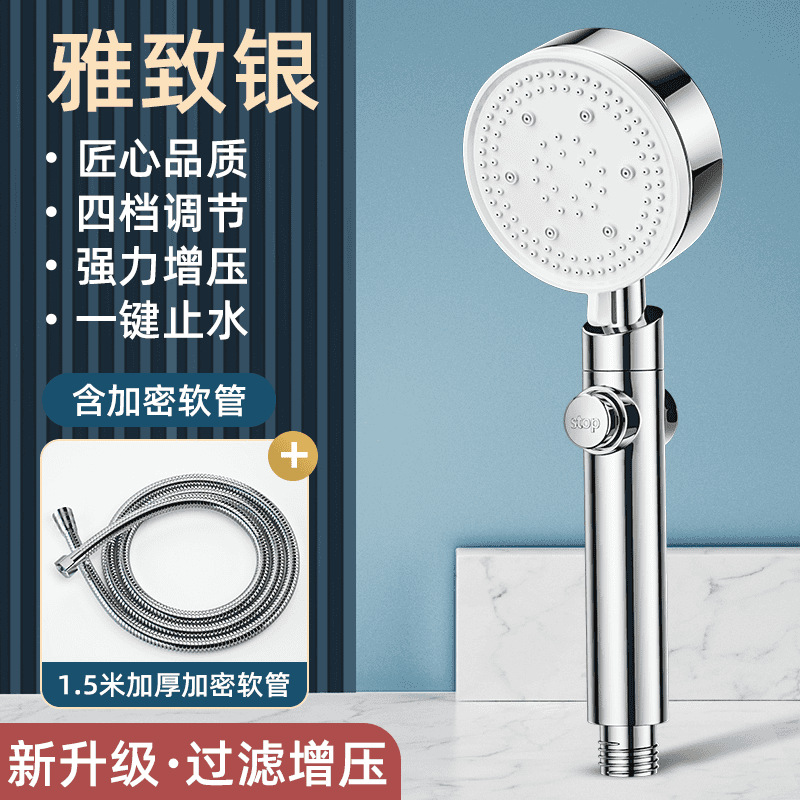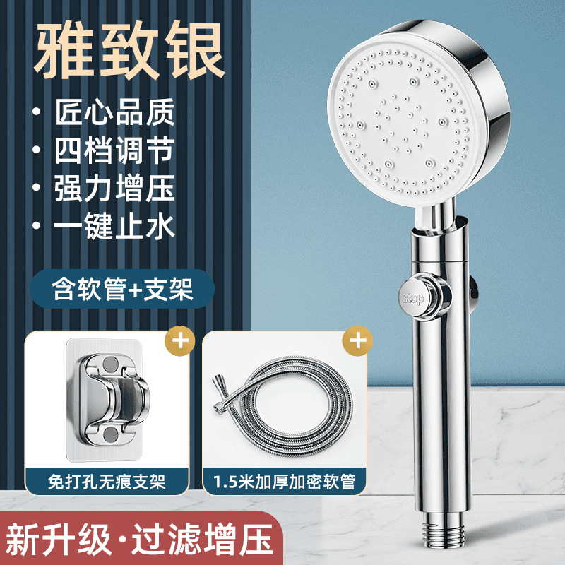 • 원터치 누수 방지 샤워기 [실버] + 1.5m 호스 + 거치대