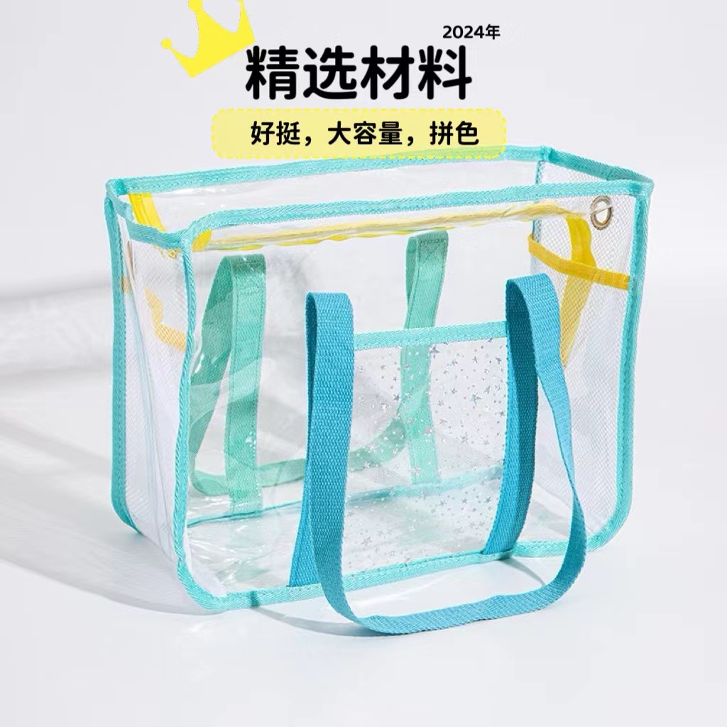 방수 비치백 대용량 투명 PVC 세면도구 수납 가방 수영 물놀이 휴대용 가방 어린이 수영 가방 두꺼운