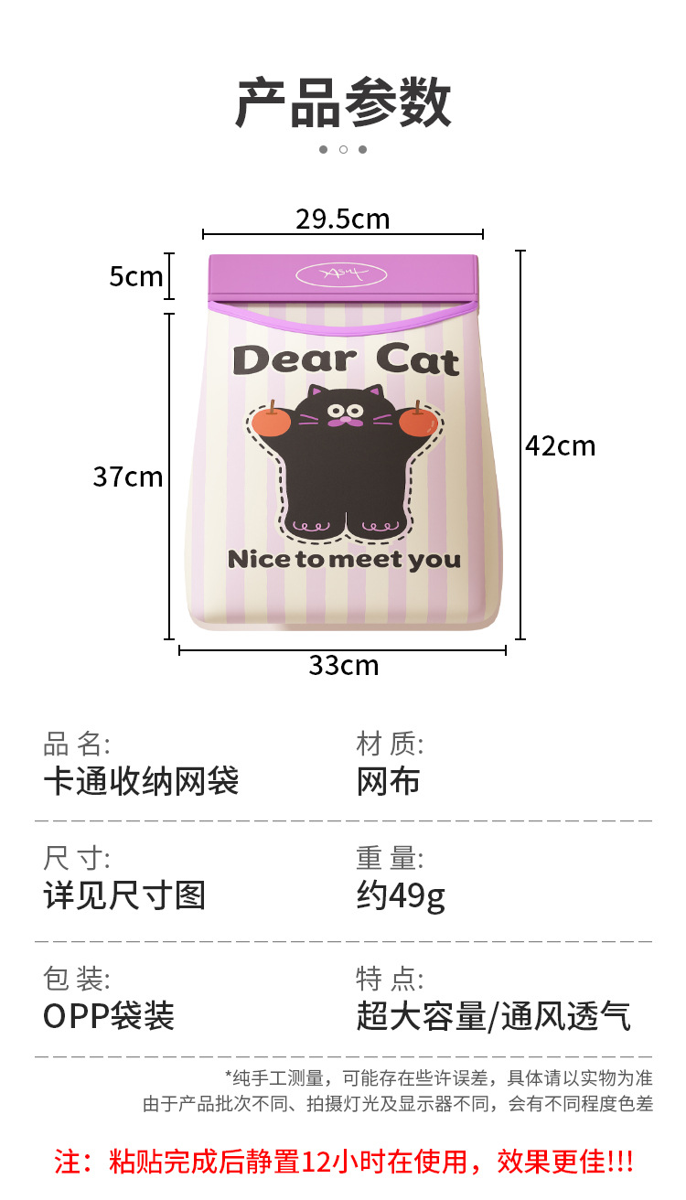 만화 벨크로 보관 메쉬 가방, 다기능 보관 가방, 의류 및 양말 보관 가방, 펀치 없는 보관 바구니, 자동차 보관스토어 가기