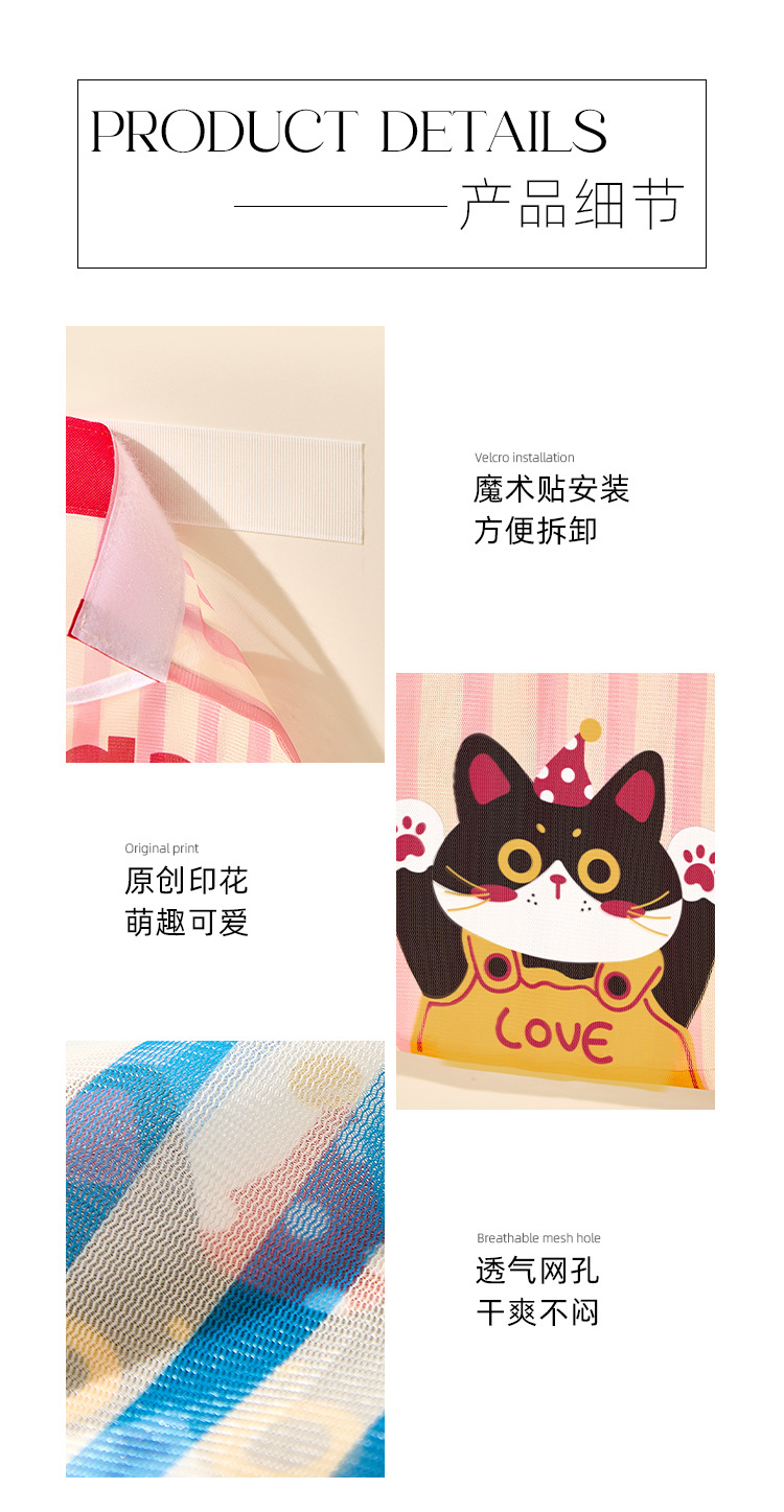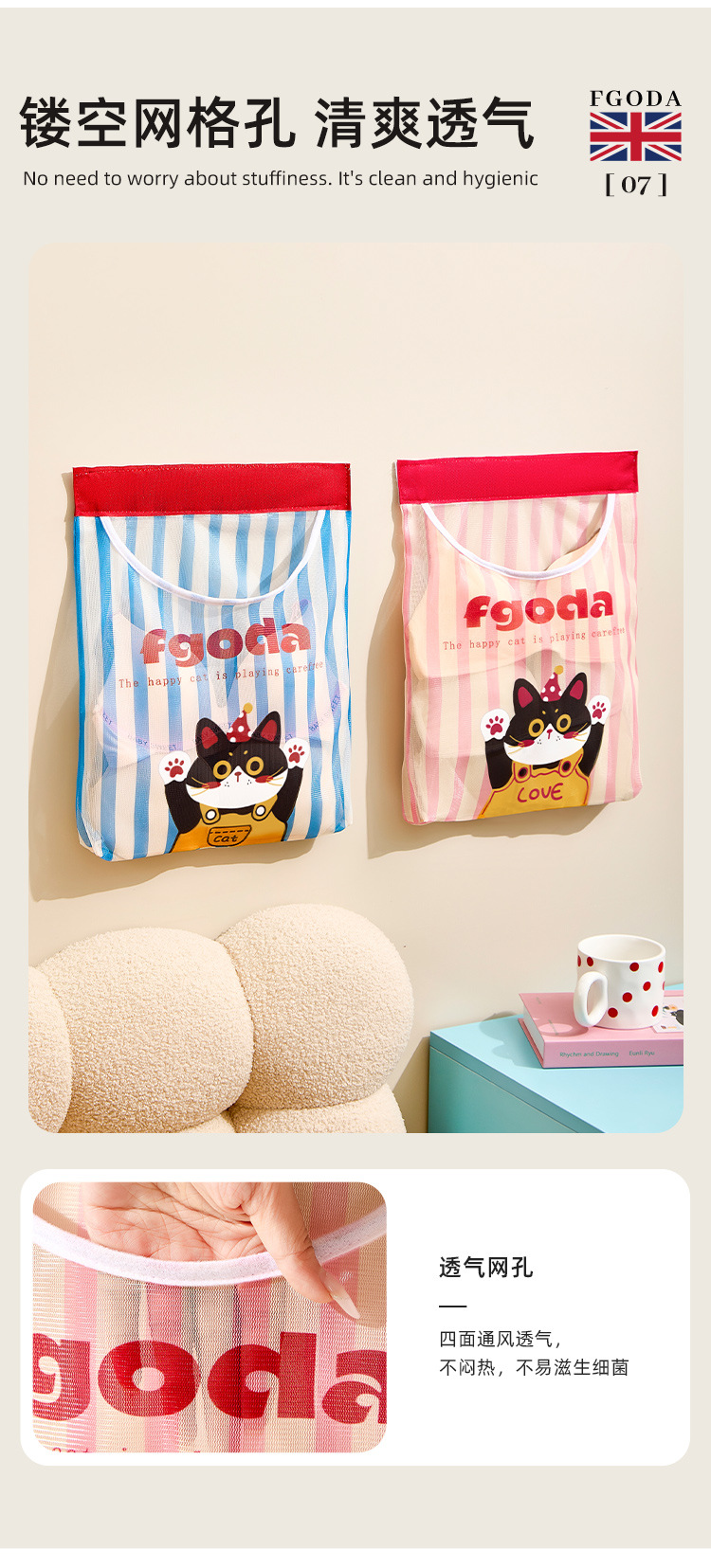 만화 벨크로 보관 메쉬 가방, 다기능 보관 가방, 의류 및 양말 보관 가방, 펀치 없는 보관 바구니, 자동차 보관