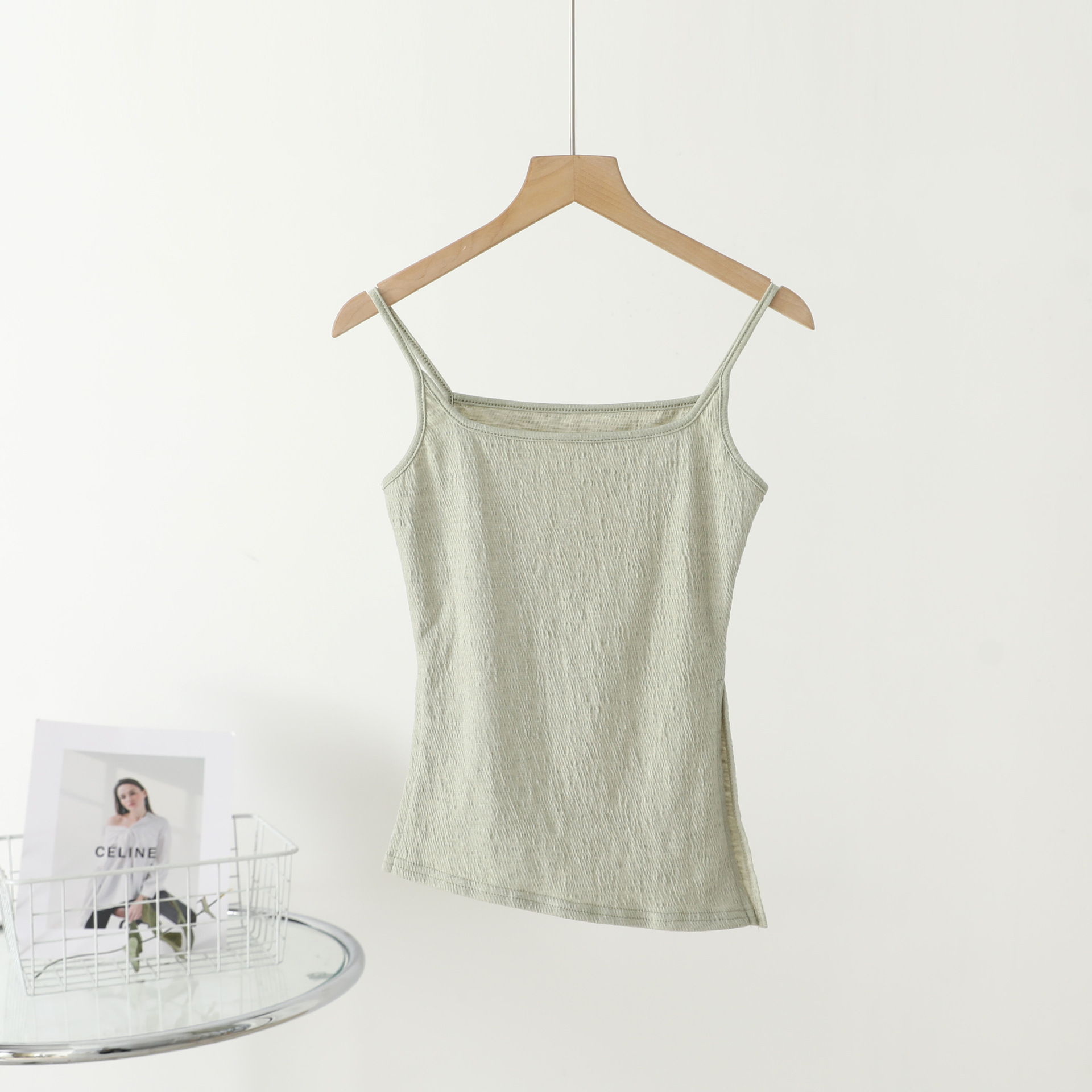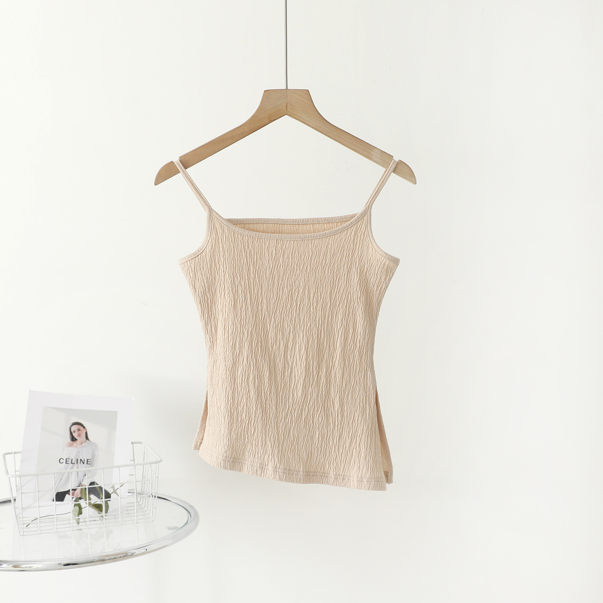 2025 봄 여름 대나무 주름 서스펜더 텍스처 클리어 퓨어 디자이어 슬리밍 이너웨어스토어 가기