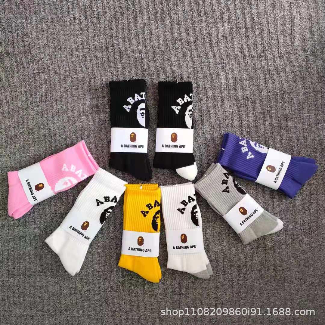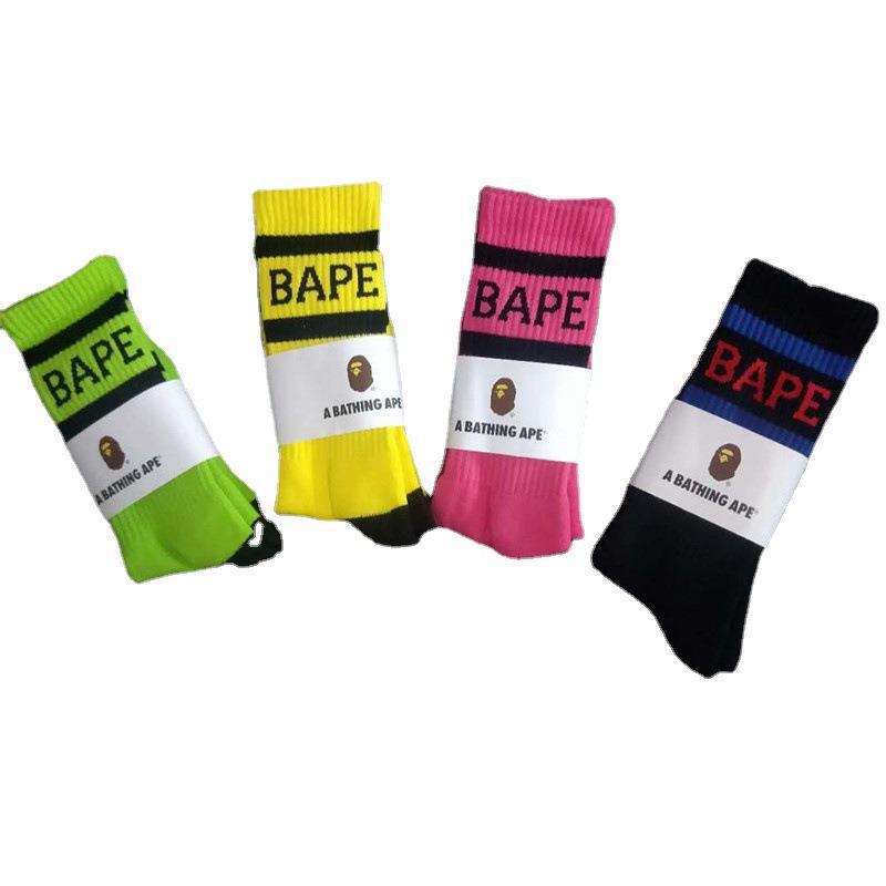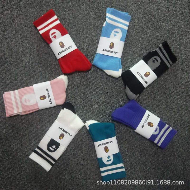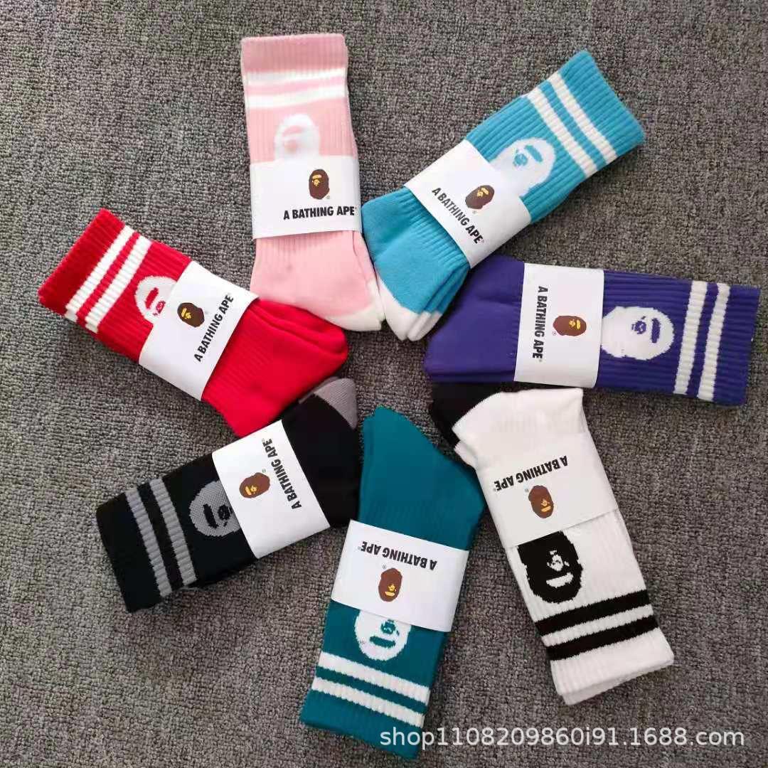 일본 유인원 머리 양말 bape 남성 및 여성용 컬러 스포츠 양말 고층 올 매치 양말 면 양말 머리카락 지원스토어 가기