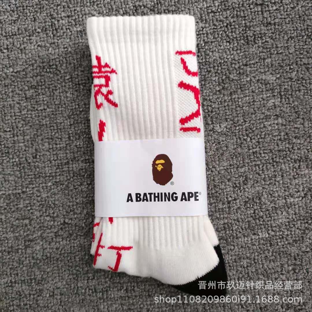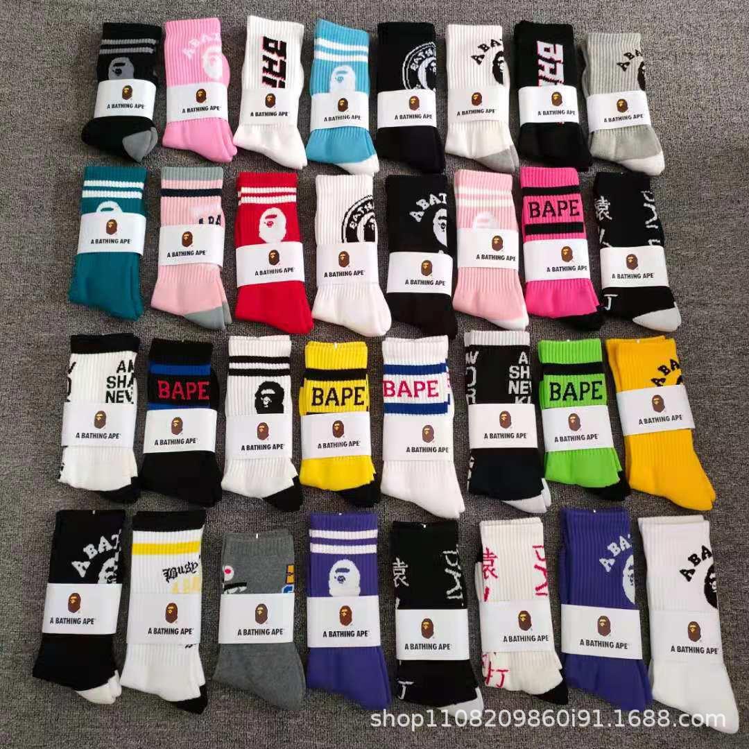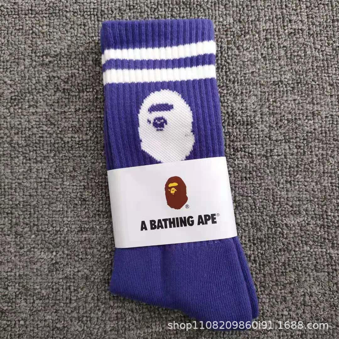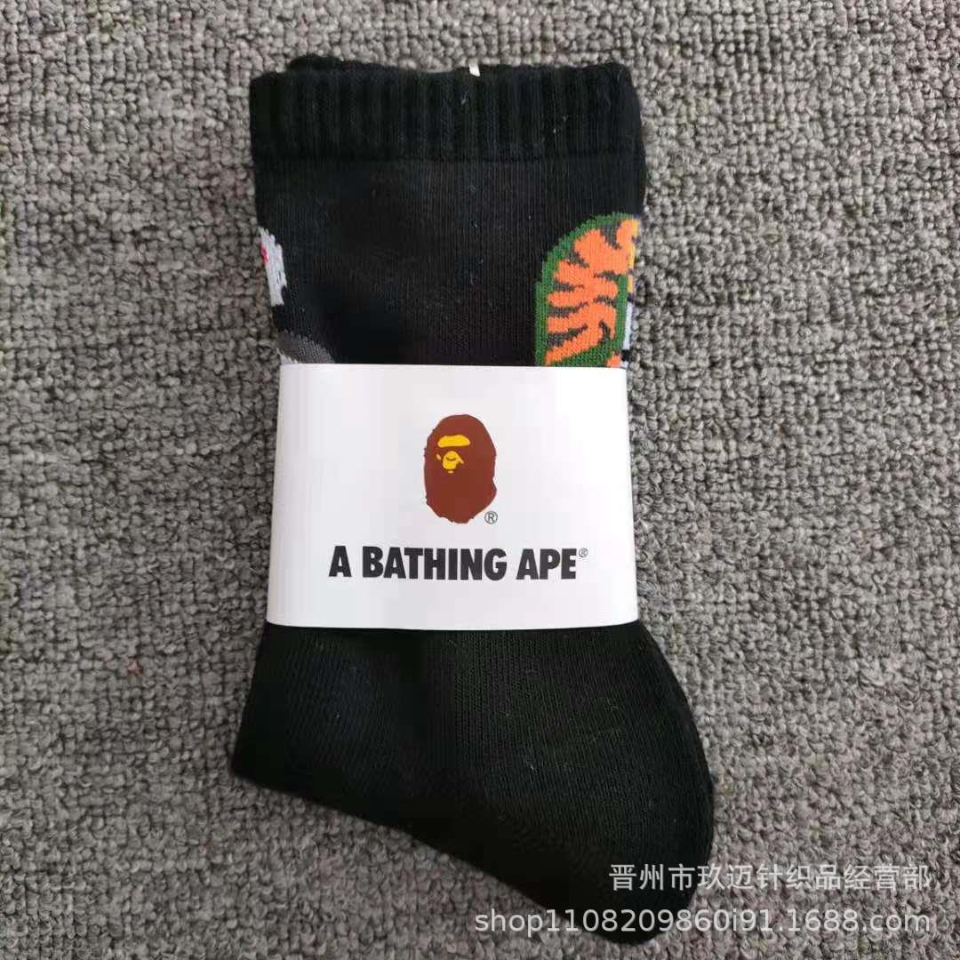 일본 유인원 머리 양말 bape 남성 및 여성용 컬러 스포츠 양말 고층 올 매치 양말 면 양말 머리카락 지원스토어 가기