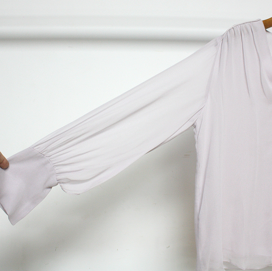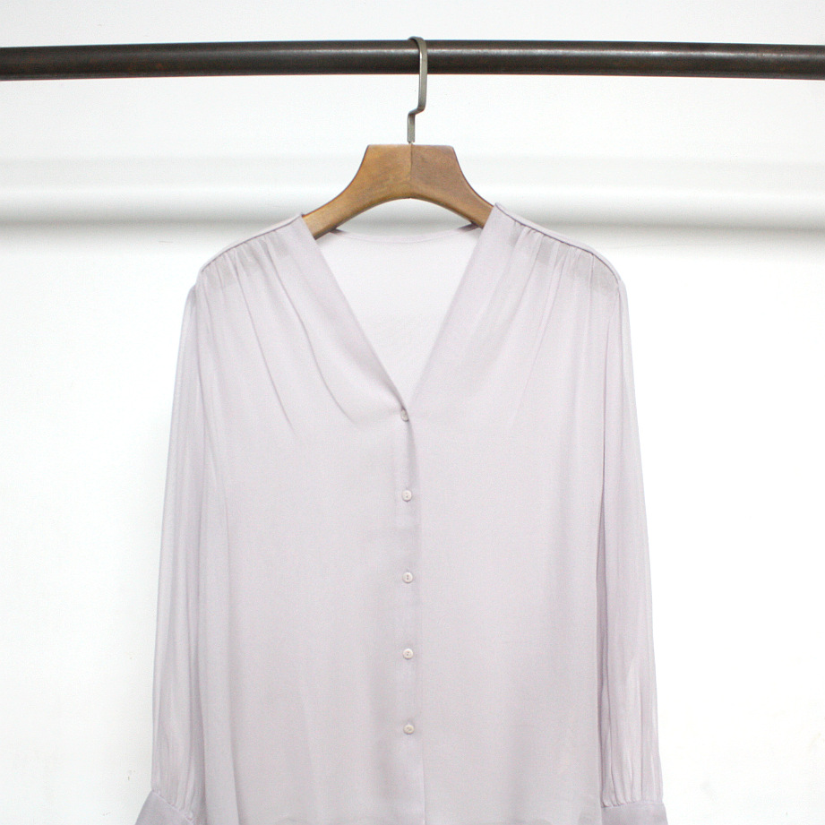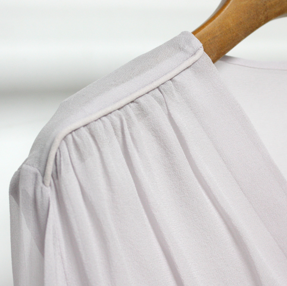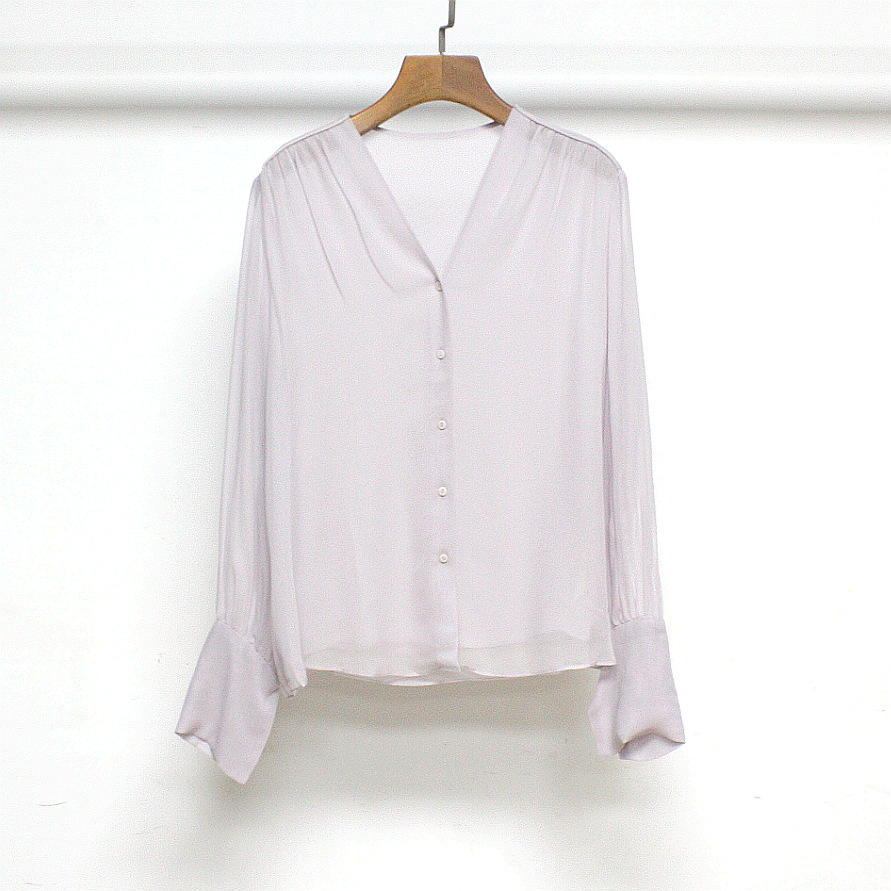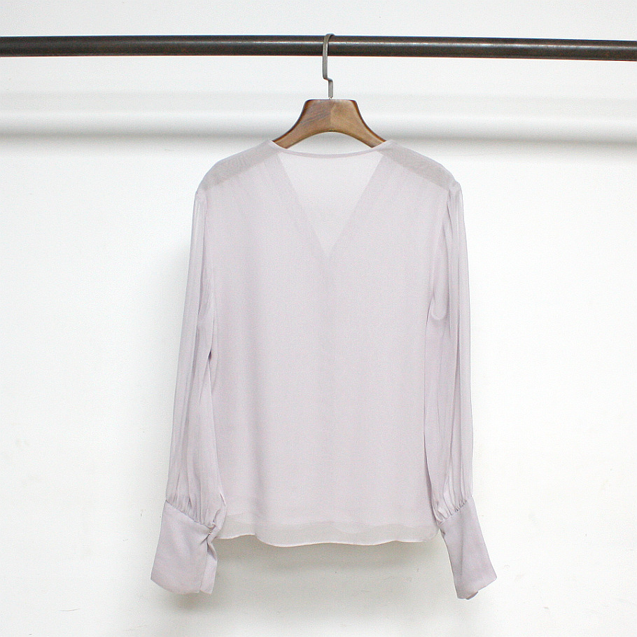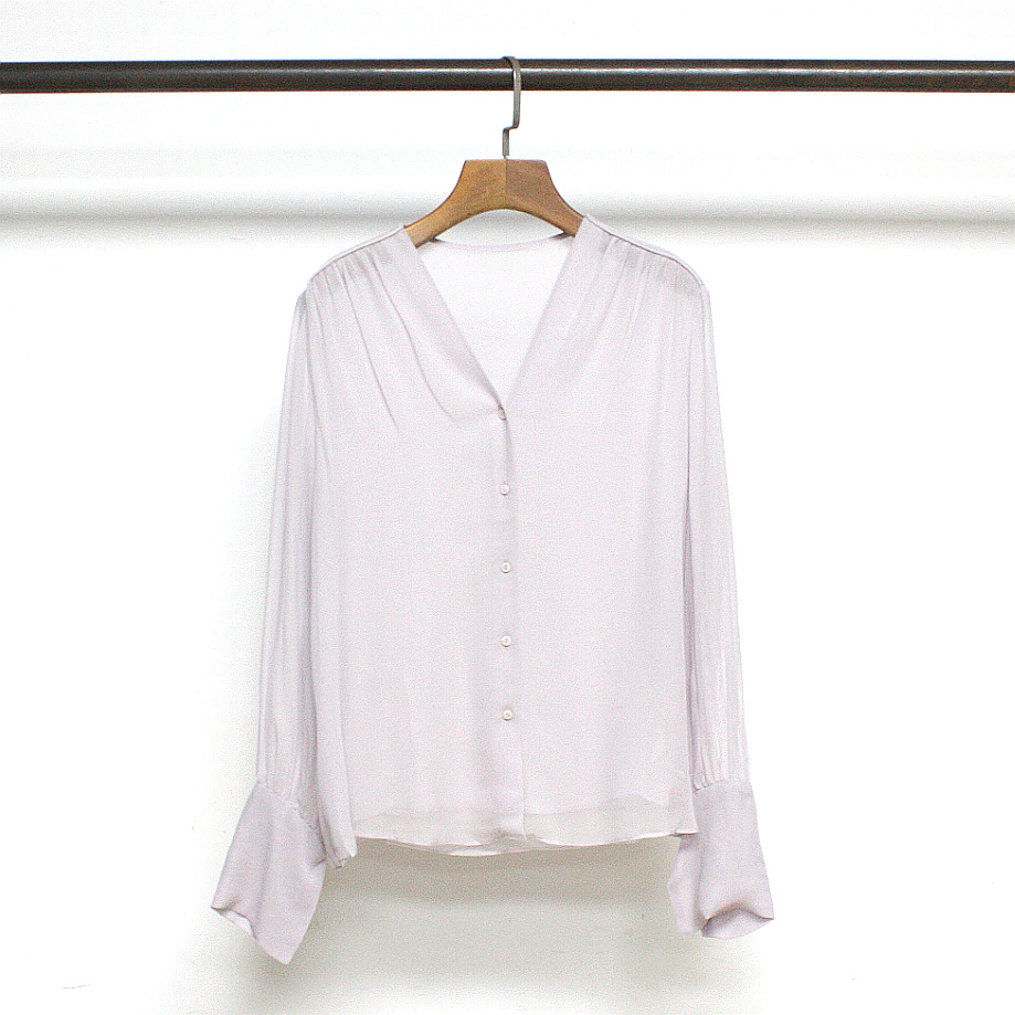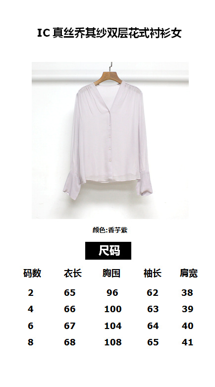 봄/여름 2023 New IC 실크 조젯 더블 레이어 팬시 셔츠 팬 가족 어깨 주름 V-넥 뽕나무 실크 탑스토어 가기