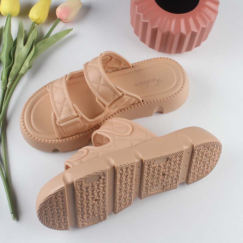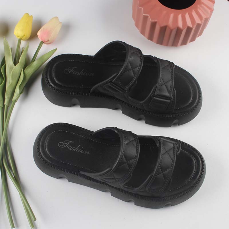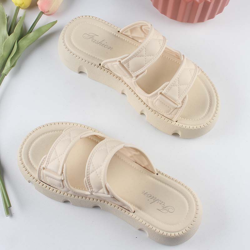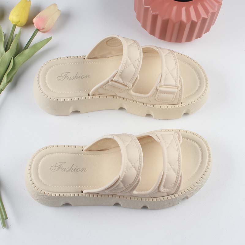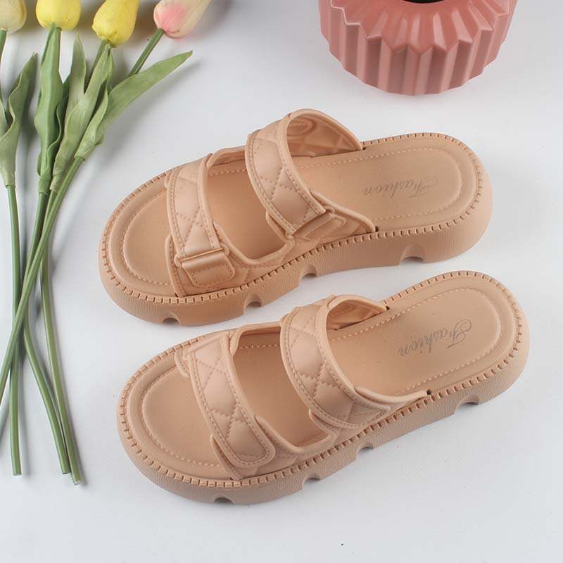 여성용 여름 크로스 보더 두꺼운 슬리퍼 새로운 유행 더블 벨트 복장 캐주얼 비치 플랫 슬리퍼 여성