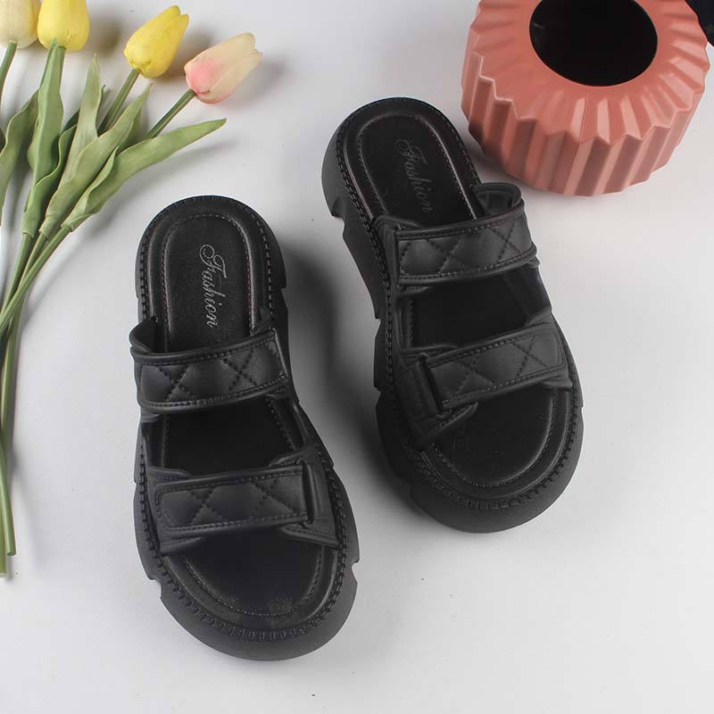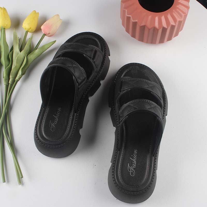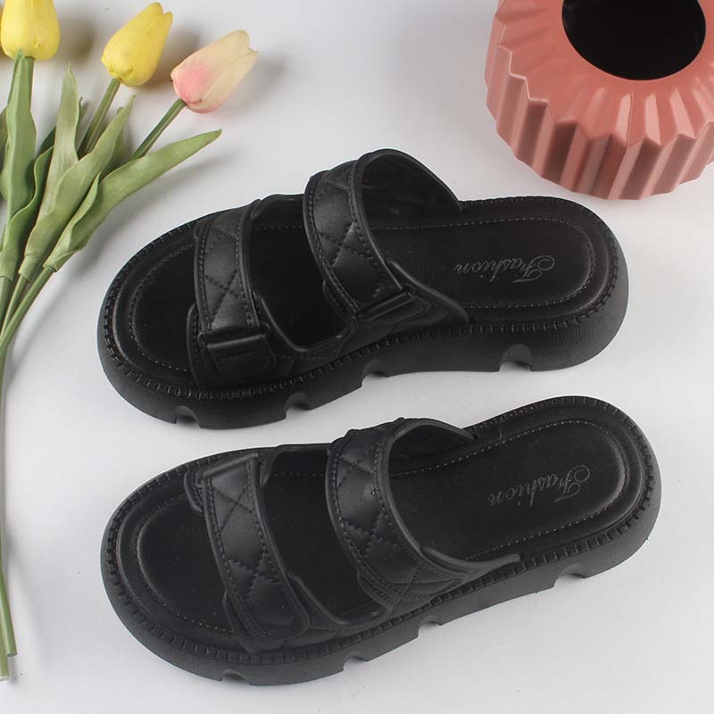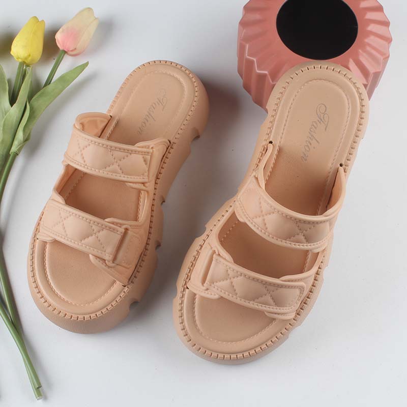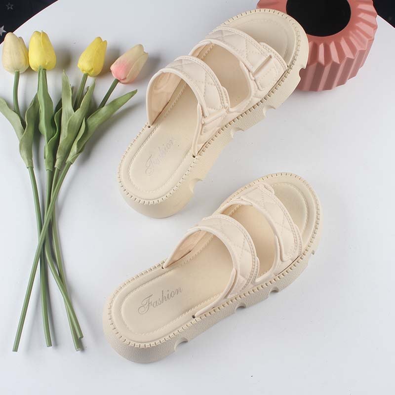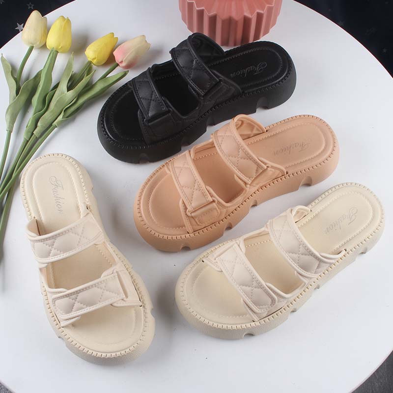 여성용 여름 크로스 보더 두꺼운 슬리퍼 새로운 유행 더블 벨트 복장 캐주얼 비치 플랫 슬리퍼 여성