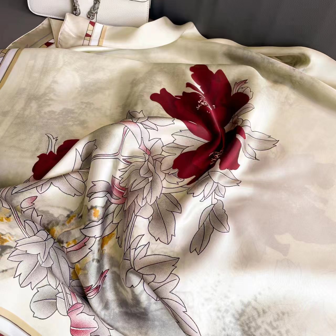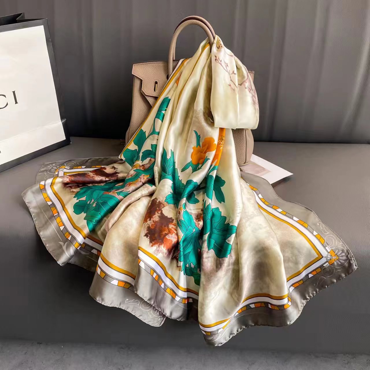 여름 모조 실크 롱 실크 스카프 여성 도매 봄과 가을 신실크 스카프 여행 선 스크린 비치 타월 버라이어티스토어 가기