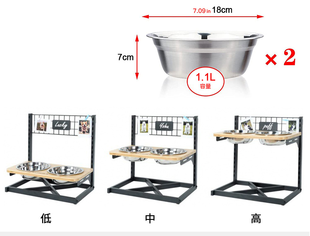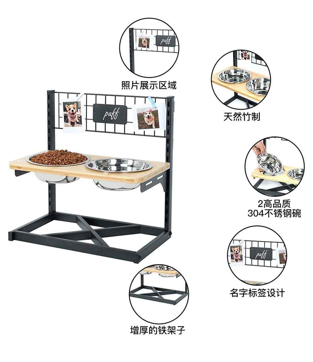 宠物碗不锈钢猫咪狗狗双碗 喂食狗粮碗架可拆支架调节高度宠物碗