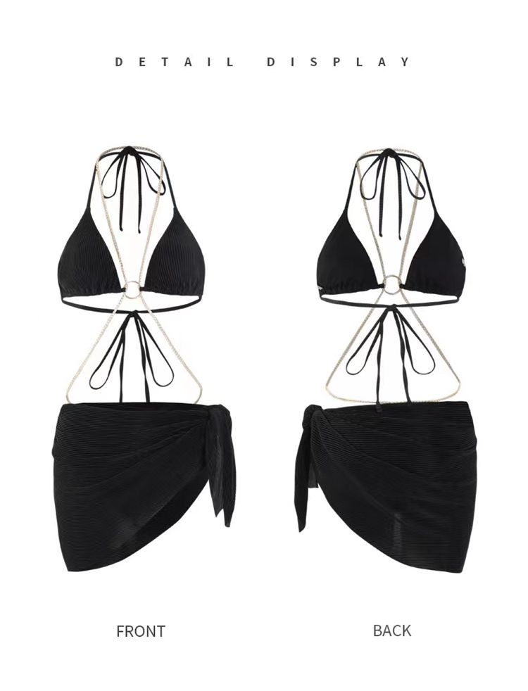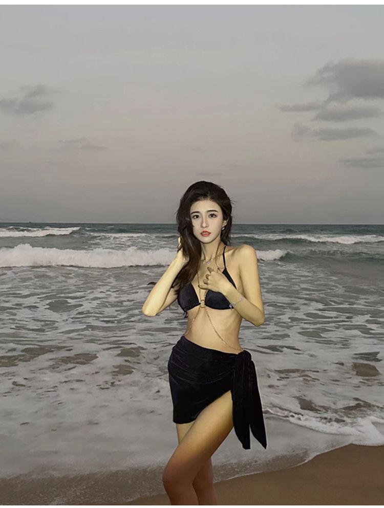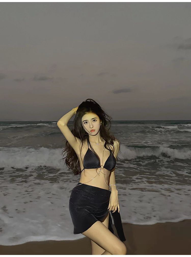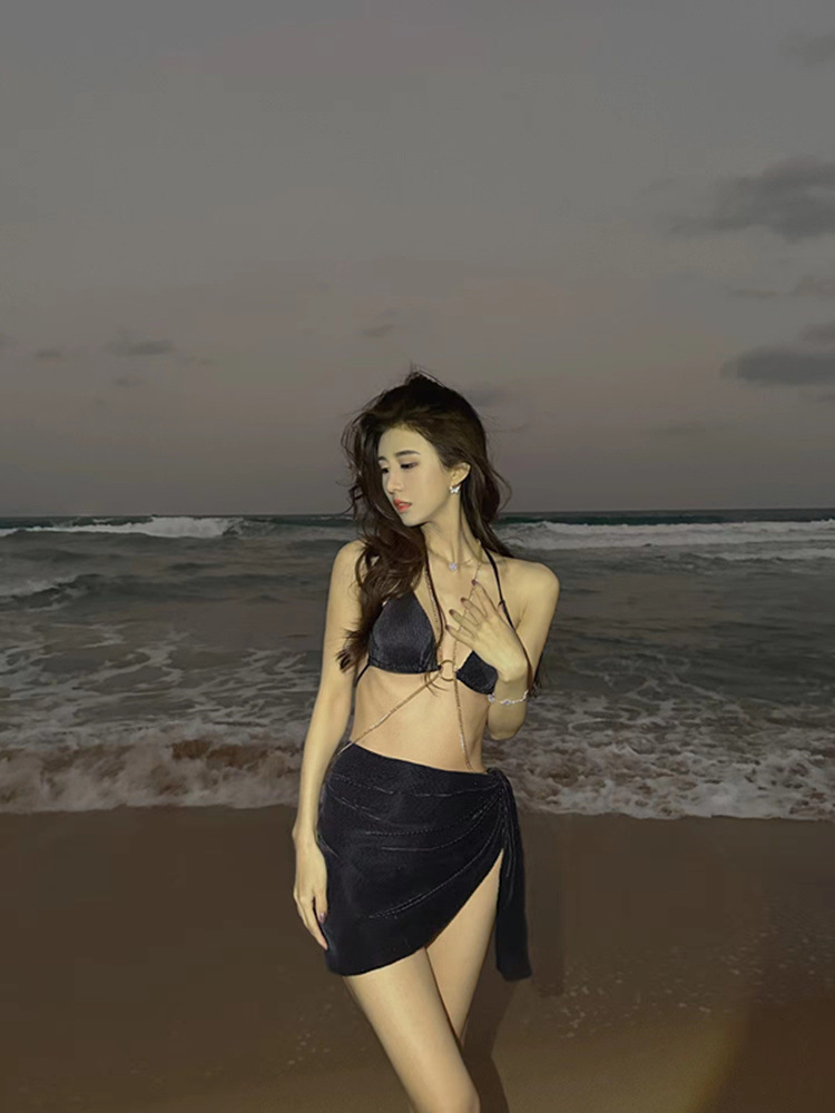 수영복 여자의 순수한 사슬 섹시한 유럽과 미국 분할 삼각형 비키니 3 종 세트 휴가 온천 수영복스토어 가기