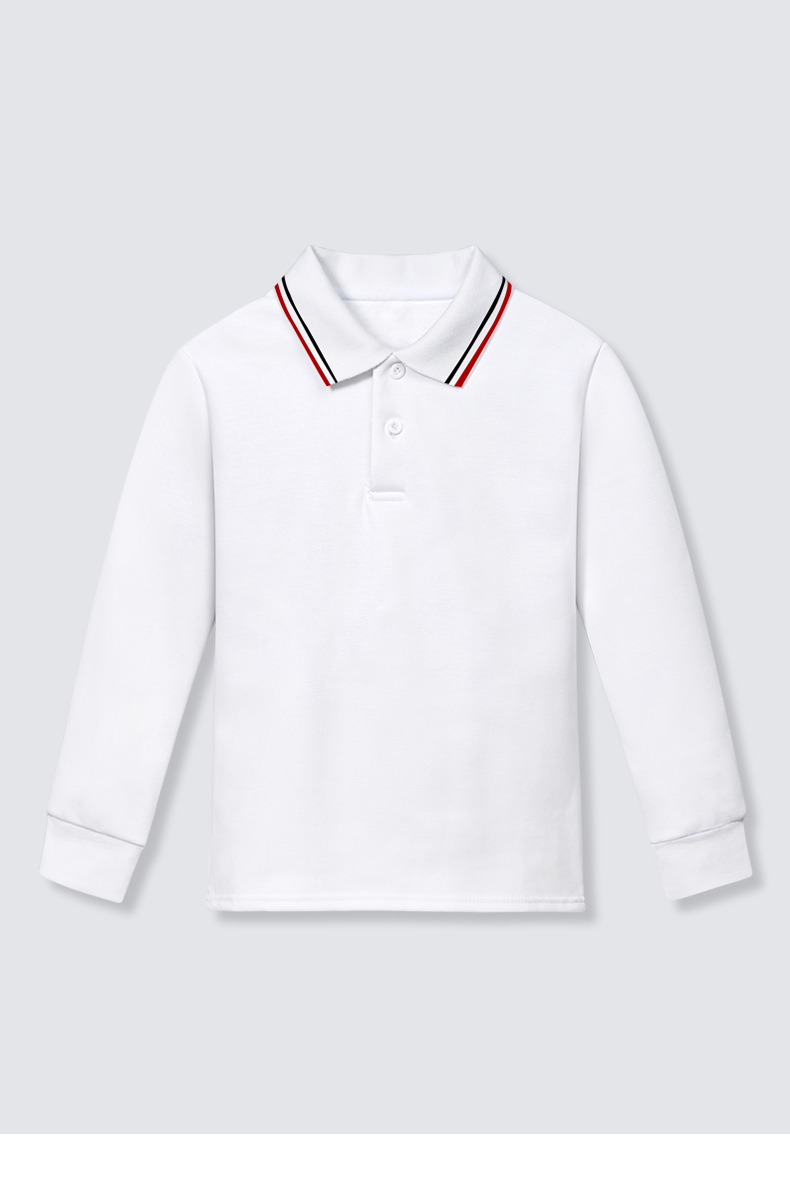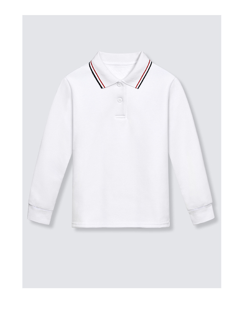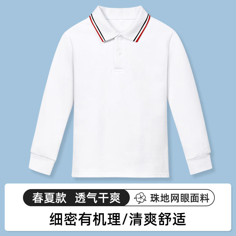 어린이 봄과 가을 순백색 폴로 셔츠 초등학생 순면 옷깃 남학생과 여학생을위한 교복 스트라이프 칼라 긴 소매 단색 티셔츠