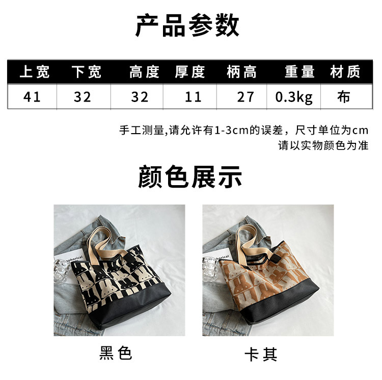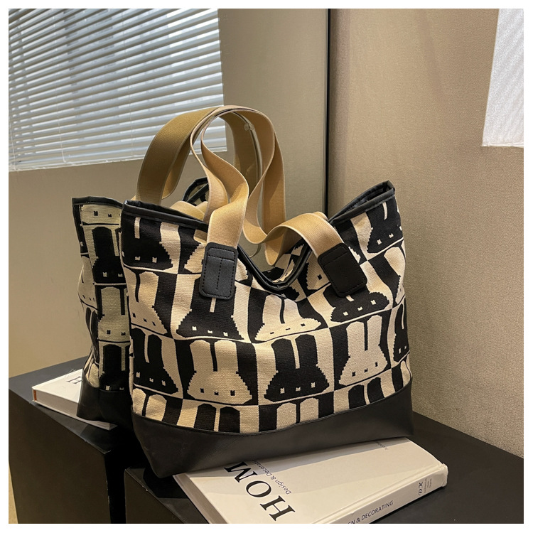 미라 백 2022 새로운 토끼 캔버스 백 모자 및 유아 경량 숄더백 Baoma 핸드백 대용량 토트백