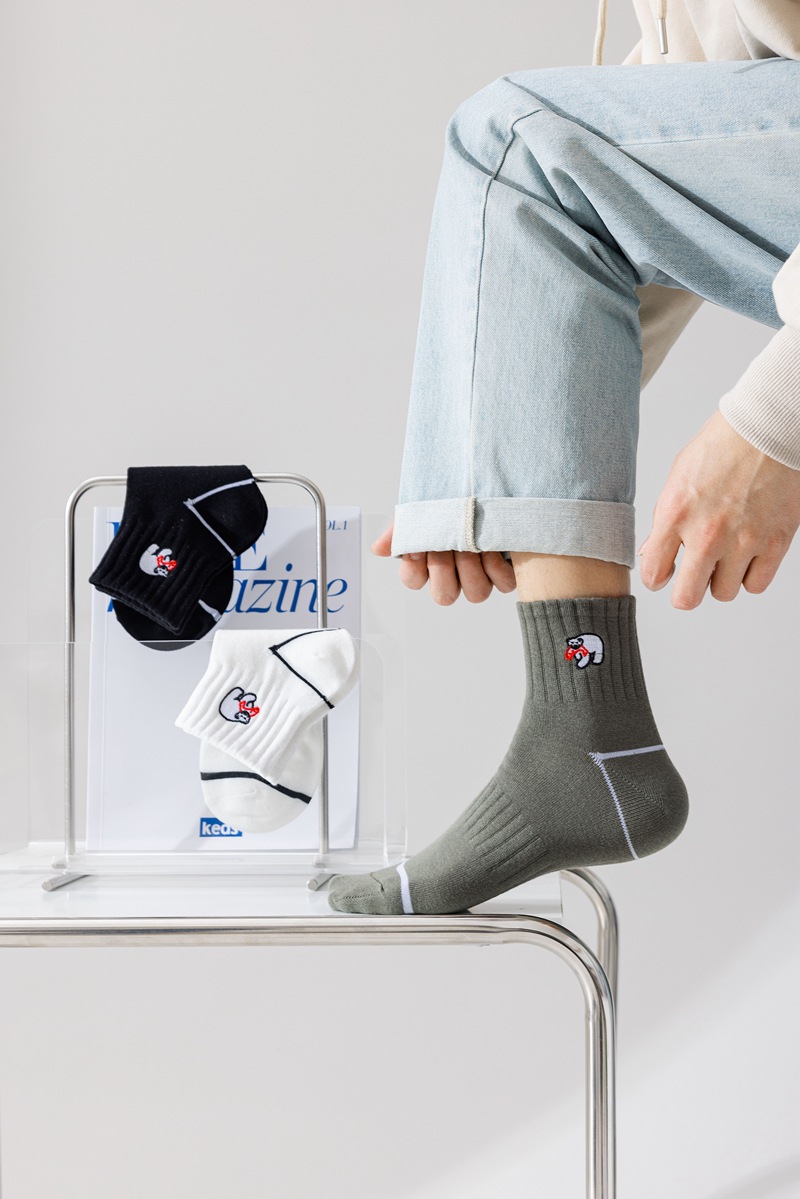 양말 남자 봄과 여름 북극곰 만화 동물 자수 로우 탑 허리 땀 흡수 통기성 스포츠 짧은 튜브 면 유행 양말스토어 가기