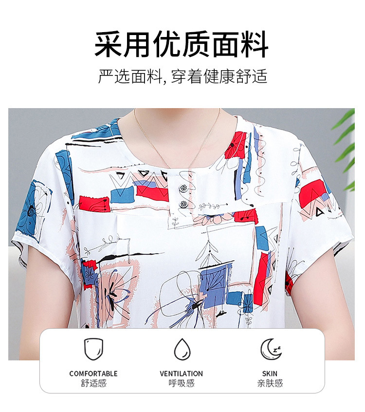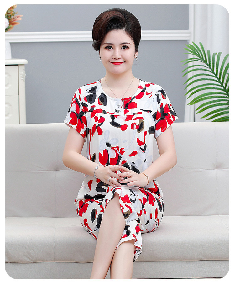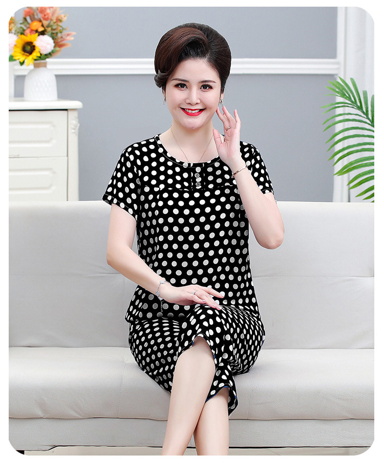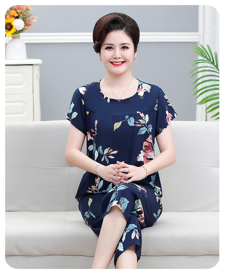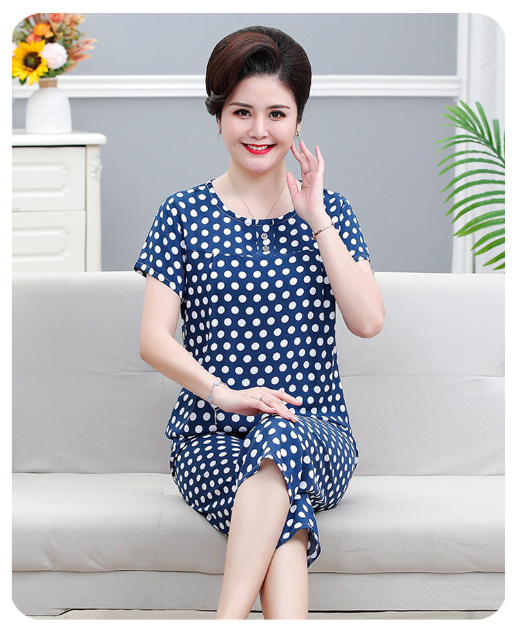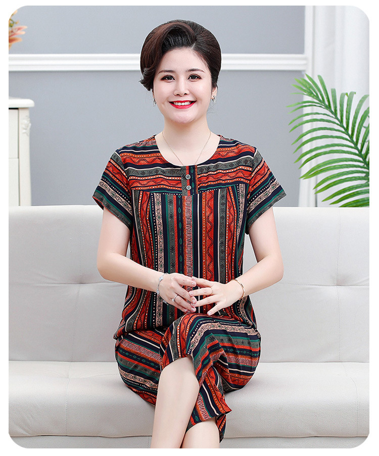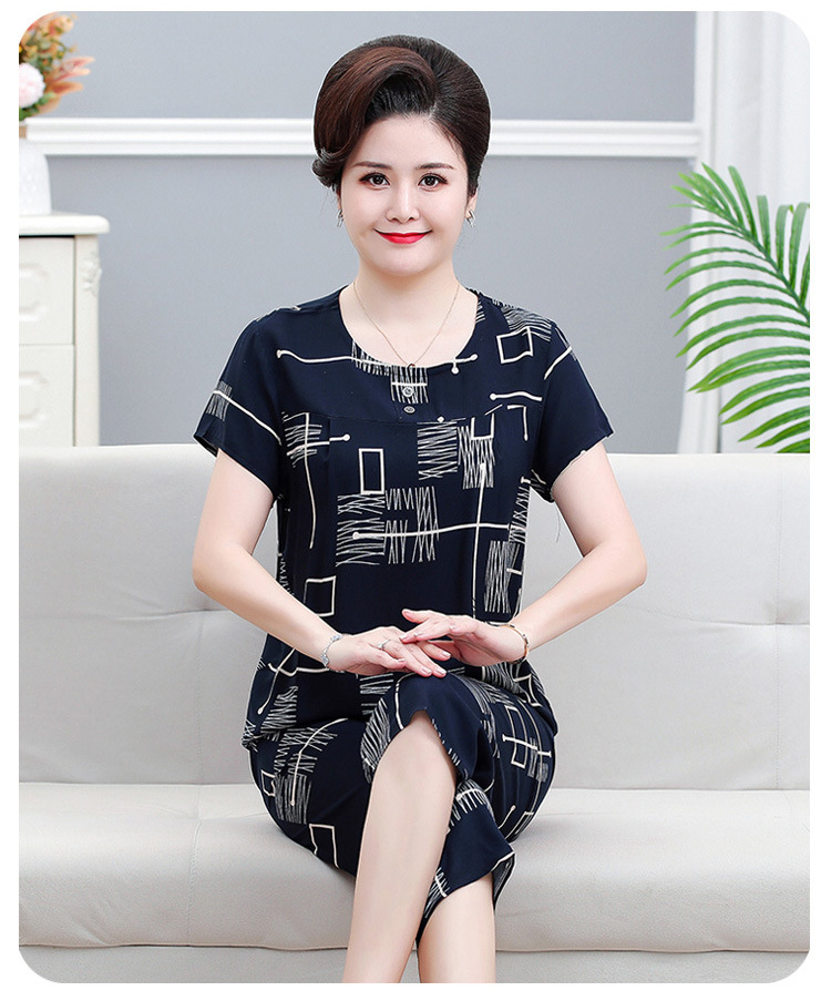면 실크 잠옷 세트 카프리 바지 여름 통기성 얇은 중년 및 노인 어머니 여성용 반팔 가정 의류