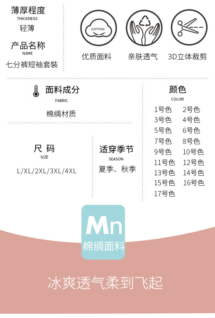 면 실크 잠옷 세트 카프리 바지 여름 통기성 얇은 중년 및 노인 어머니 여성용 반팔 가정 의류스토어 가기