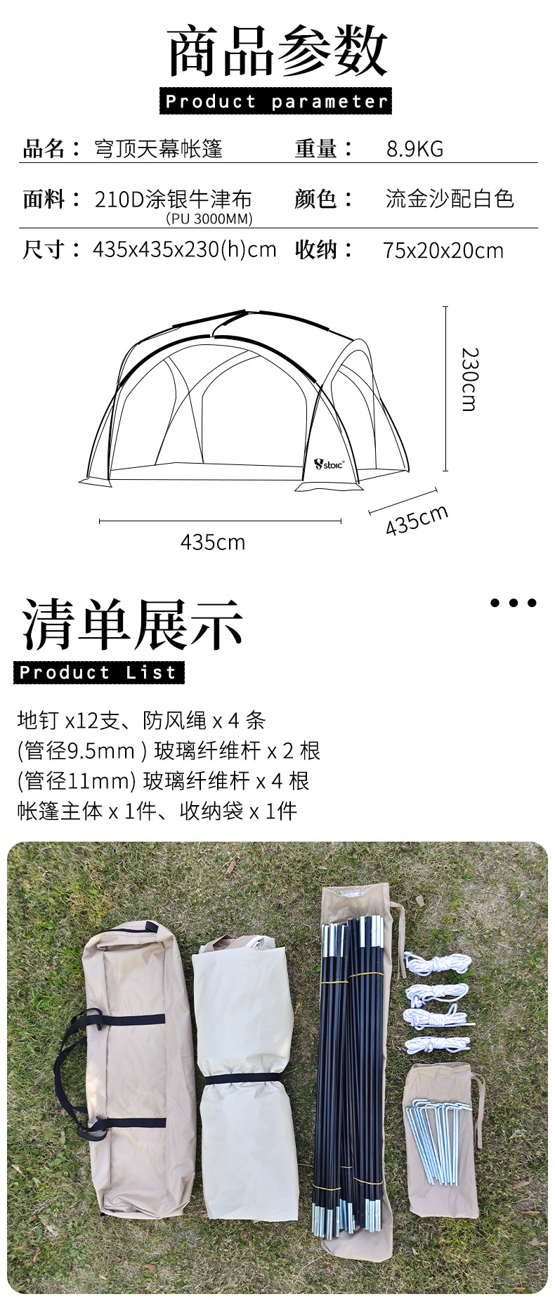 스토익 야외 캠핑 돔 캐노피 빅 텐트 캠핑 방수 자외선 차단제 대형 천막