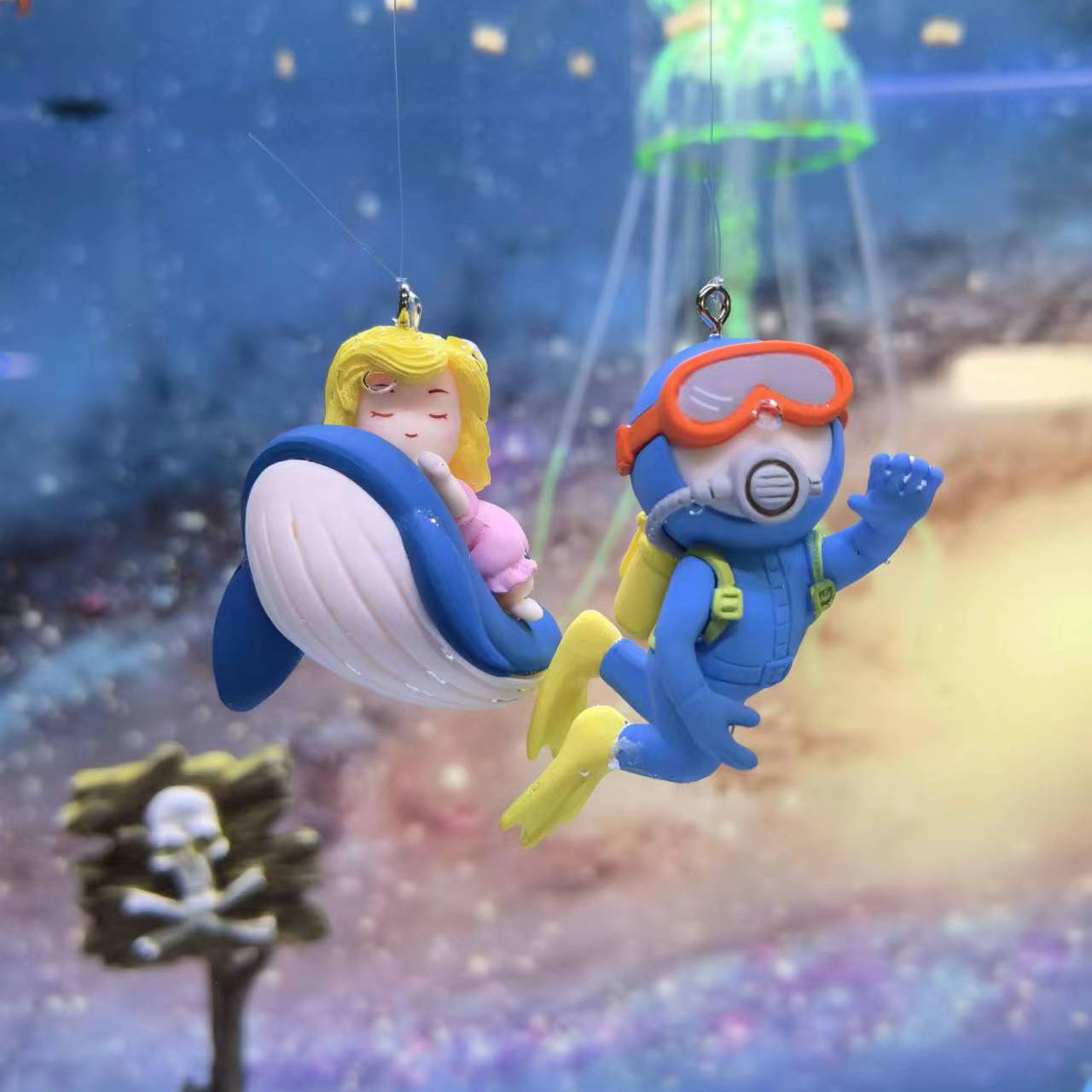 오렌지 블루 뚱뚱한 남자 다이버 재고 도매 수족관 관상용 떠 다니는 물고기 탱크 조경 해양 장식품 frogman