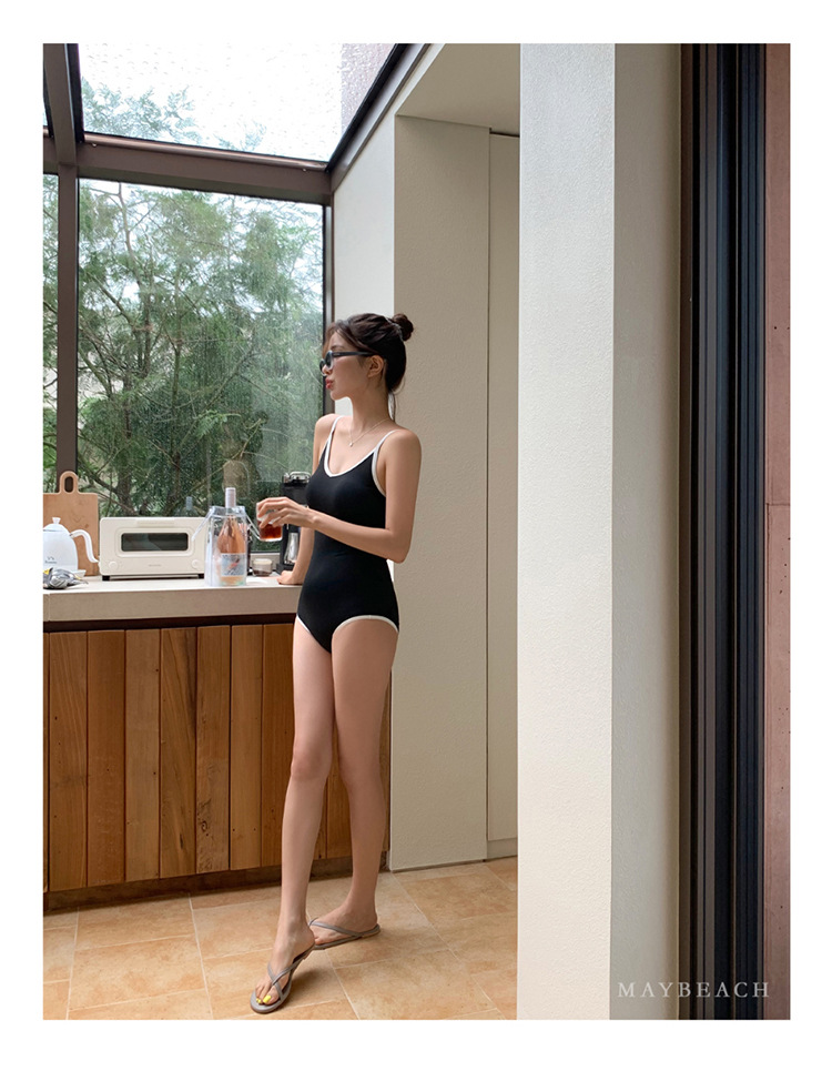 삼각형 원피스 수영복 여자의 섹시한 슬링 배꼽 커버 슬리밍 작은 가슴 2023 패션 간단한 온천 도매 수영복