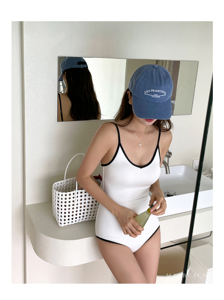 삼각형 원피스 수영복 여자의 섹시한 슬링 배꼽 커버 슬리밍 작은 가슴 2023 패션 간단한 온천 도매 수영복스토어 가기