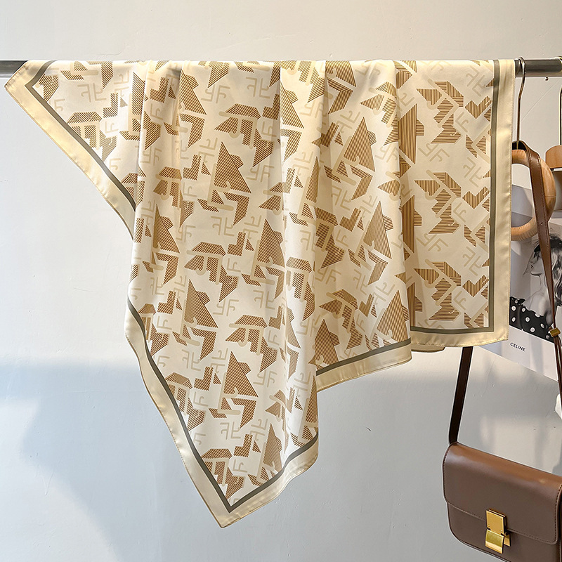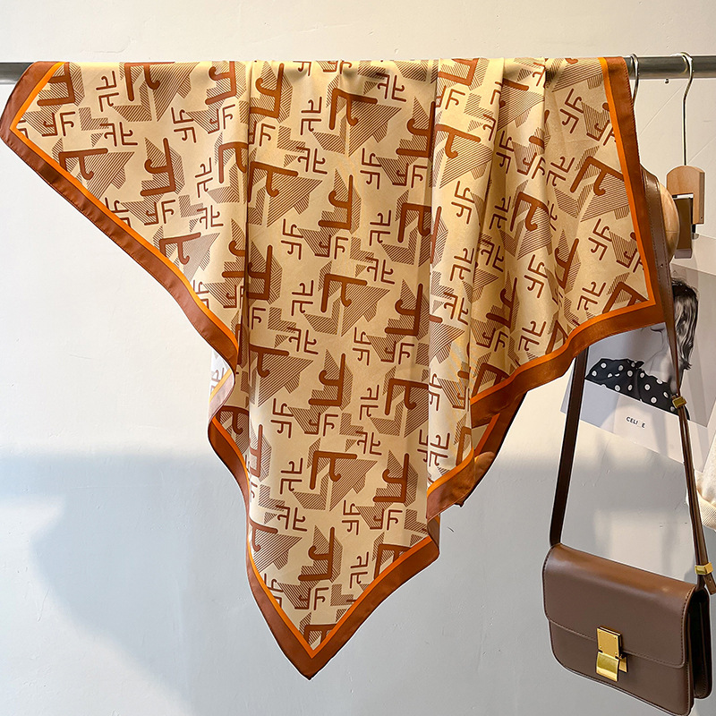 2023 새로운 편지 봄과 가을 패션 능직 90 대형 스퀘어 스카프 여성용 실크 스카프 장식 스카프 여름 자외선 차단제 비치 타올스토어 가기