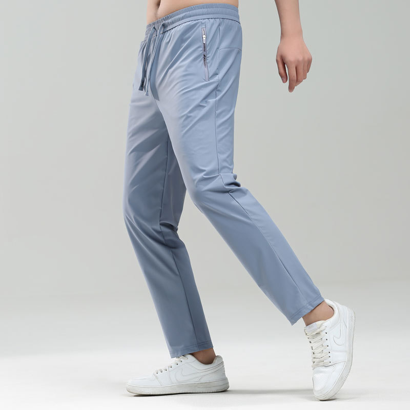 여름 아이스 실크 바지 남성용 플러스 사이즈 탄성 허리 얇은 통기성 속건 스포츠 바지 여성용 다리 발가락 탄성 캐주얼 바지스토어 가기