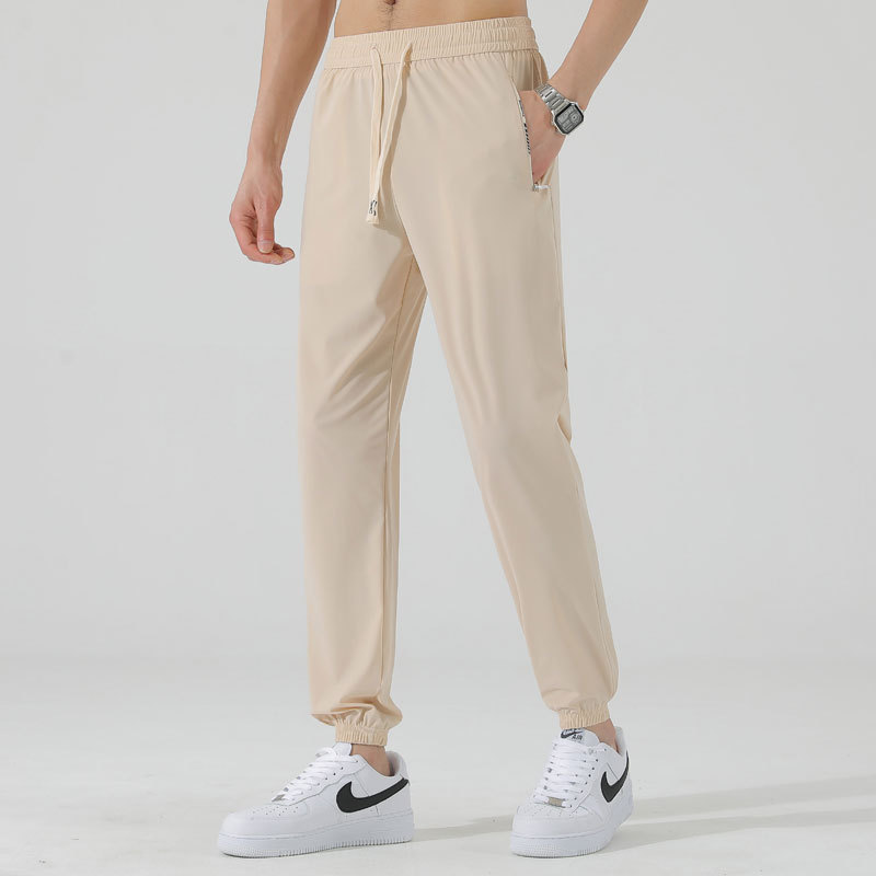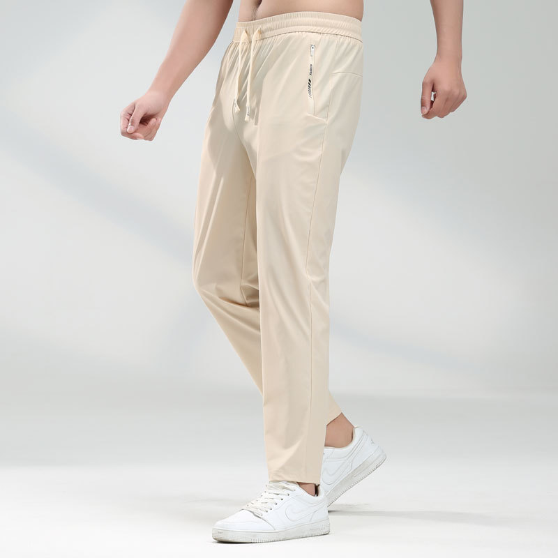 여름 아이스 실크 바지 남성용 플러스 사이즈 탄성 허리 얇은 통기성 속건 스포츠 바지 여성용 다리 발가락 탄성 캐주얼 바지