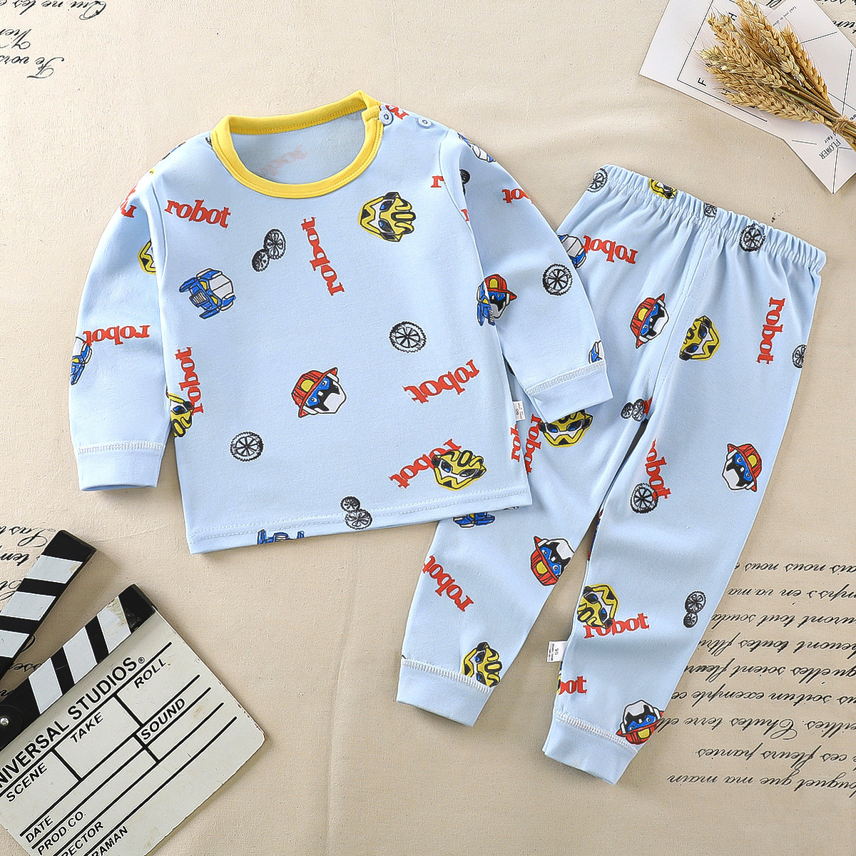 어린이 잠옷 소년 소녀 긴팔 가정 옷 세트 여름 얇은 아기 에어컨 옷 면 어린이 의류스토어 가기