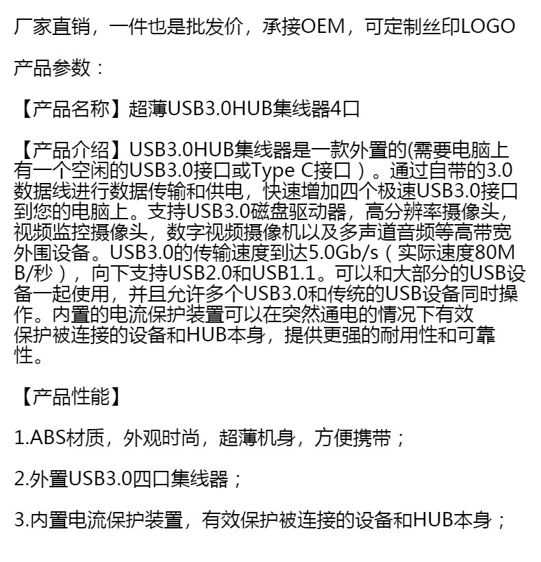 공장 도매 usb3.0hub 확장 도크 1 드래그 4 초박형 고속 허브 usb 스플리터 4 usb